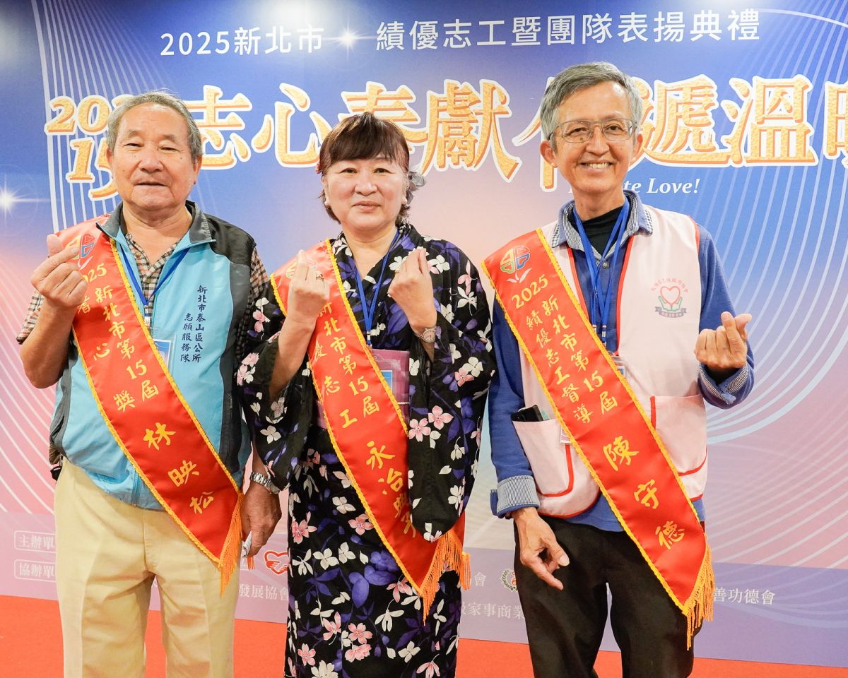 新北市政府社會局長李美珍補充,今年獲選績優志工團隊包括部北醫院、鶯歌陶博館、新北市文史學會、樹林地政所、勞工局、海山高中、新北市輕器械健身舞藝協會及板橋區志願服務協會等,各團隊皆在不同領域展現熱忱與專業,感謝所有志工夥伴無私奉獻,為新北市注入更多溫暖與希望。