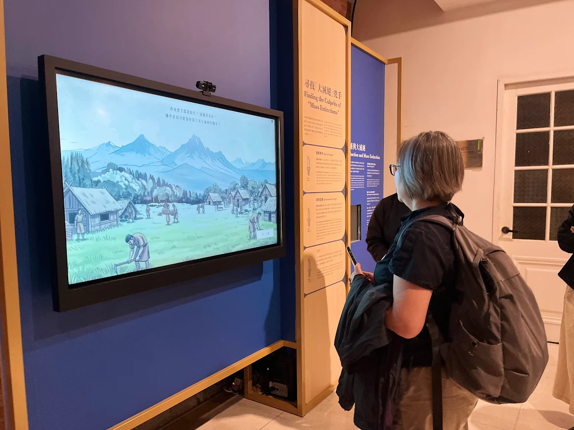 展區另一亮點為尋找大滅絕成因之AI拍貼互動機台,觀眾可透過觸控螢幕進行互動,探索大滅絕的原因。民眾可以任意點選狩獵時代、農業時代、現代等三個不同時期,並透過單人或雙人模式將個人AI形象嵌入畫面,形成專屬敘事風格,藉以觀察時代環境的變遷與人類行為變化,逐步發現形成生態滅絕的原因。拍攝完成後,觀眾可立即輸出照片,或將數位檔案下載、分享至個人社群,提升趣味性與參與感。
