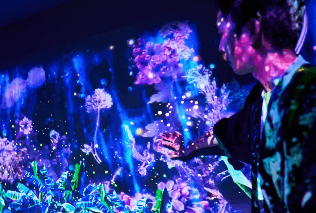 令人驚艷的亮點,就是「緩緩坪林」二樓的沉浸式光影展「光影茶鄉四季」,最新的5G技術與大幅投影,讓人眼前一亮後是一種安靜卻讓人著迷的沉浸:茶園的晨霧、春季的螢火蟲、夏日溪流裡的原生魚群、秋冬山坡的季節轉色,都一一溫柔重現。旅客只要伸出手,光影就會如山風與溪水般輕輕流動,彷彿置身坪林的日常四季,感受到熱烈但和諧的自然生命力。