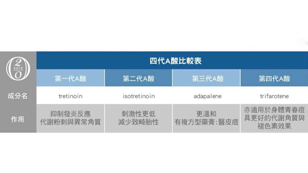 第四代A酸艾克痘與其它3種外用A酸介紹