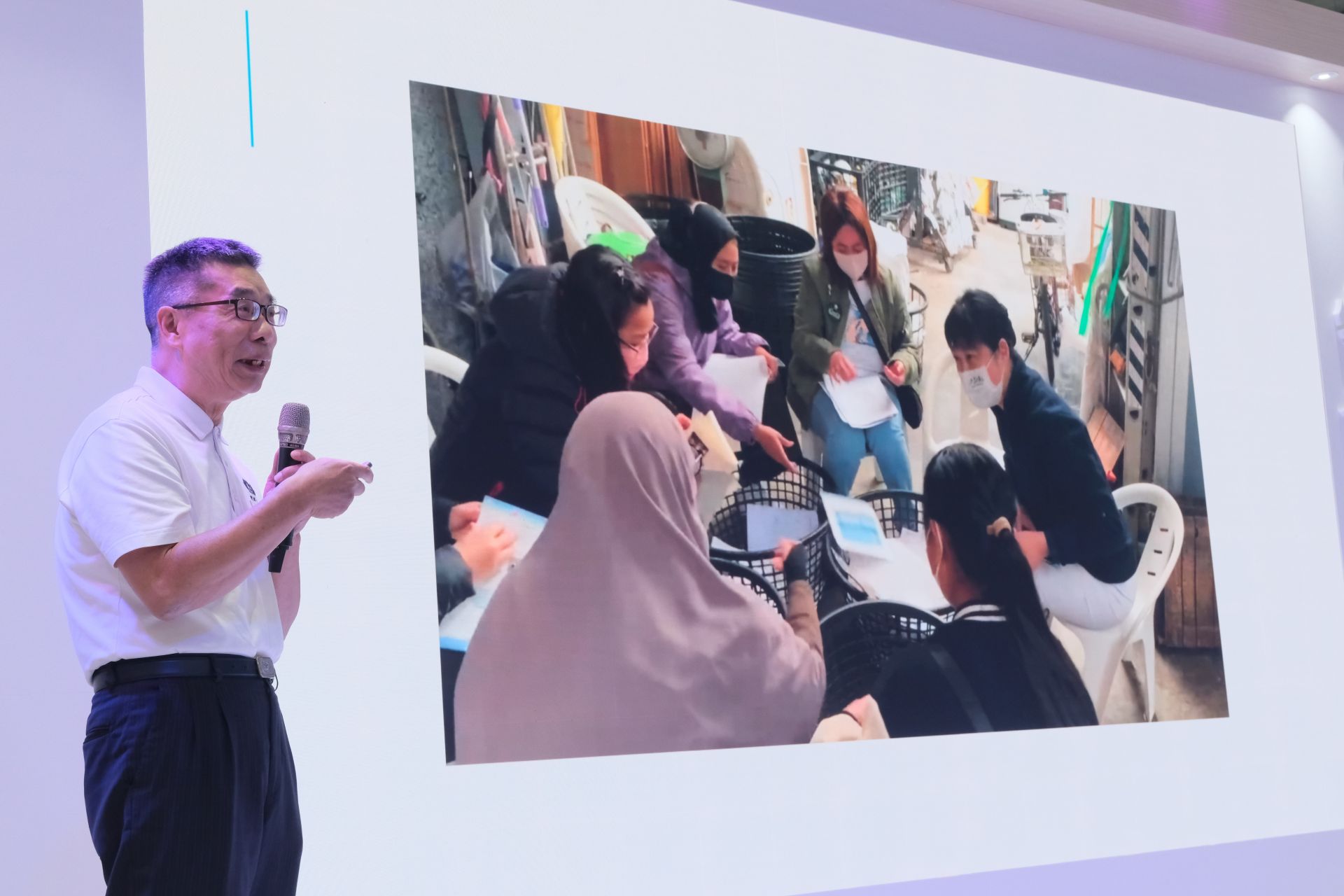 黃祥麟醫師以「愛的處方箋:從街友到移工的行動醫療」為題,談起九二一地震時,他沒能為房舍倒塌的阿嬤做假牙,心中留下遺憾,這個陰影種下了日後,再困難,也要幫街友做假牙的因緣。北區人醫會早年即在萬華地區為街友義診,當時街友也有假牙的需求,直到2002年,終於募集到一輛牙科巡迴醫療車,是用三噸半的貨車改造的,黃祥麟終於如願啟動為街友做假牙的診療服務。人醫會每隔一、兩週,便開著「牙科巡迴醫療車」到萬華服務,有時艷陽曬得人車發燙;有時暴雨傾盆襲擊。但不管什麼天氣,街友來做假牙,身上總掛著大包、小包,所有家當都揹過來。那三年,黃祥麟醫師風雨不息的為上百位街友製作假牙。