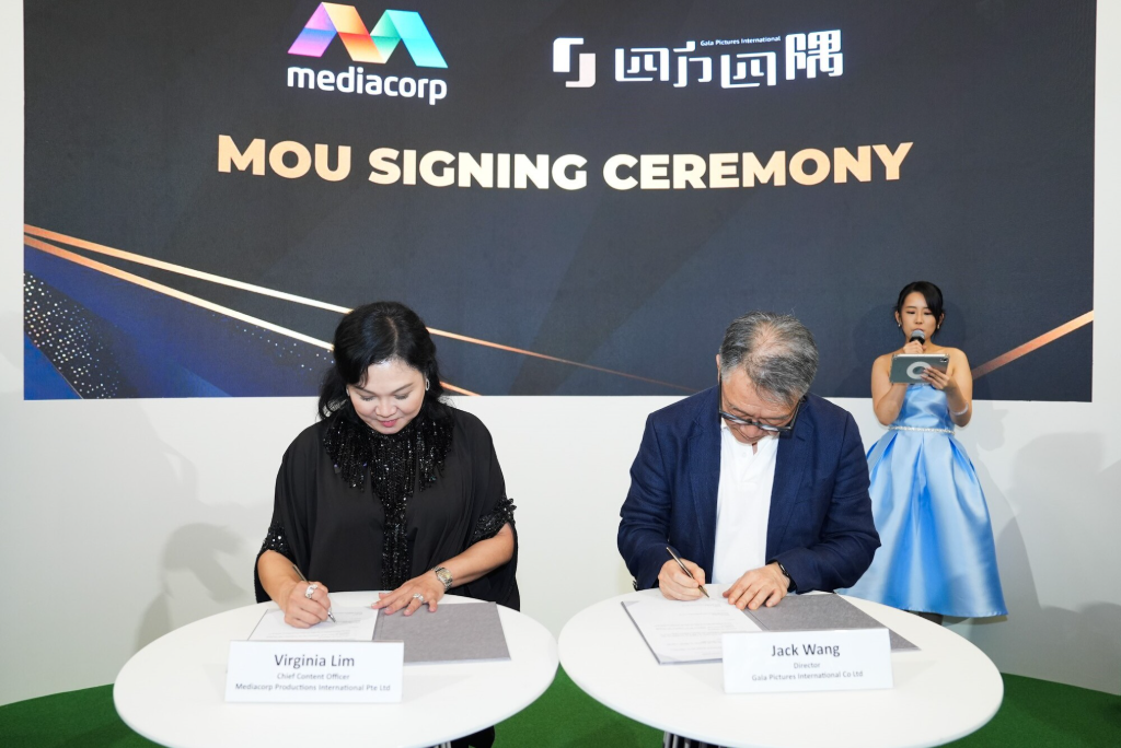 ▲ 八大電視總經理暨四方四隅董事王克捷(圖右)與新加坡新傳媒集團Mediacorp首席內容長(CCO)林麗慧(圖左),雙方簽署為期三年的戰略合作備忘錄(MOU), 正式宣布將共同開發與製作兩部原創劇集。(圖:八大電視、Mediacorp)