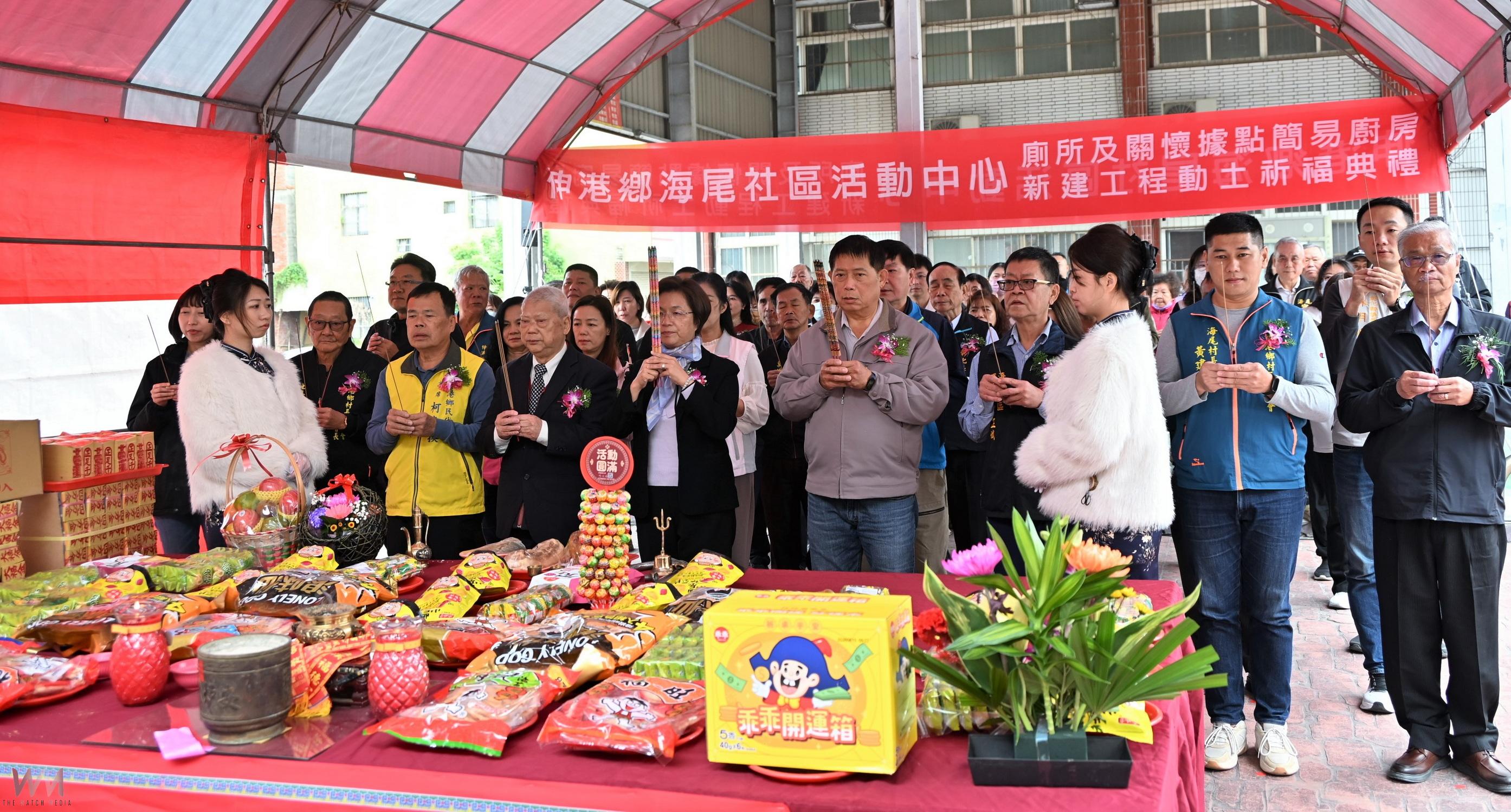 伸港鄉公所於今(4)日上午舉辦「海尾社區活動中心廁所及關懷據點簡易廚房新建工程」動土典禮,彰化縣長王惠美、伸港鄉長黃永欽、鄉民代表會主席柯嘉換及海尾社區發展協會理事長周正斌等人出席祈福。