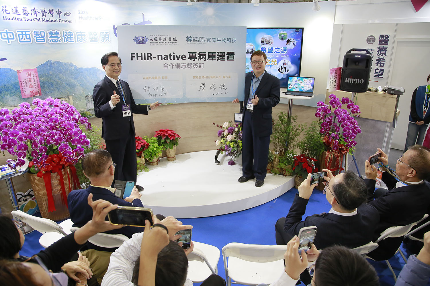 花蓮慈濟醫院院長林欣榮與寰澔生物科技公司執行長蔡耀銘12月5日於台灣醫療科技展簽署合作備忘錄,宣布啟動FHIR-native 專病庫建設,計畫從腎臟科與乳癌兩大臨床領域切入,全面推動院內醫療資料 FHIR 化。