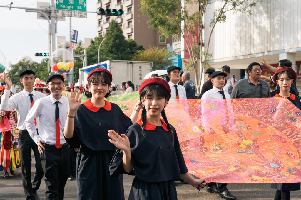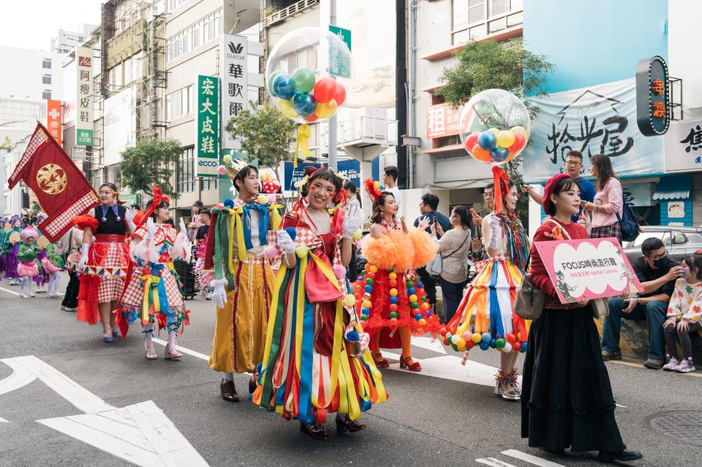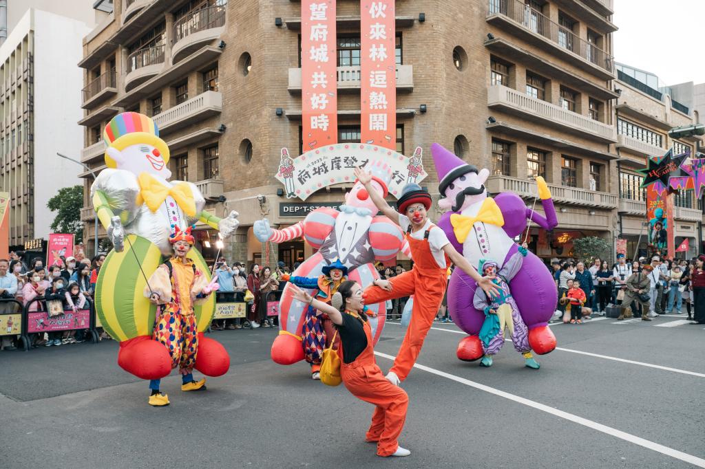 本屆遊行共有30組團隊、超過600位表演者自河樂廣場啟程出發,內容橫跨旗舞藝術、創意造型、傳統武藝、合唱、街頭雜技與青年隊伍,編織出多層次的城市流動畫面;林百貨旗隊、Focus時尚流行館《作伙嘉年華》造型隊伍與天馬戲創作劇團,以旗幟、造型服裝與高蹺展現視覺亮點;武魂擊、鳳天神鼓、樁集日舞美學研習社與S.F.C街舞團及多組舞蹈與文化團隊,則以鼓點節奏、劍影身段與舞步帶出府城獨有文化脈動;臺南女中、家齊高中流行服飾科與成大創意產業設計研究所等青年隊伍則展現滿滿創意與活力,為府城注入青春能量。