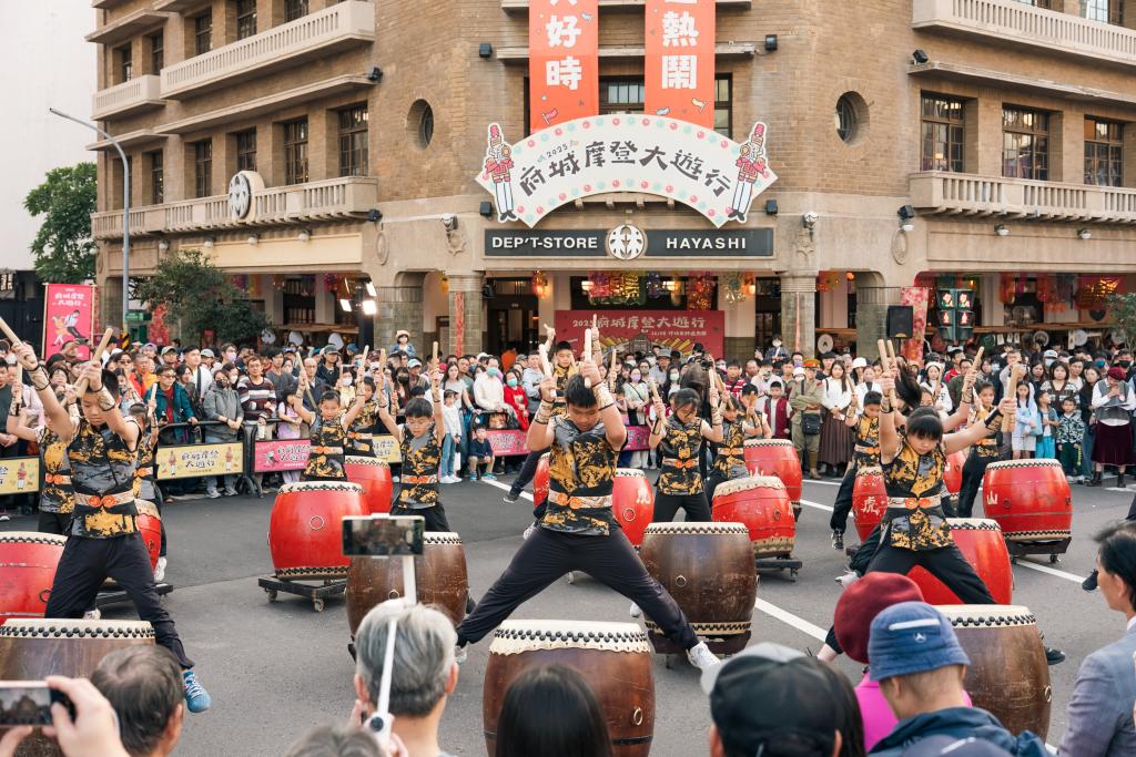 末廣町沿線兩側擠滿前來共襄盛舉民眾,許多民眾配戴今年活動限定撞色領巾、揮舞手拿旗,隨遊行隊伍前進合照、與表演者熱情互動;孩子模仿動作、旅客在街角錄影紀錄畫面隨處可見,整段遊行不僅是單向觀看,而是充滿參與感街道嘉年華;隊伍抵達林百貨後,由虎山實小鼓術擊樂團以磅礡鼓聲揭開後半段節目序幕,緊接著統一7-ELEVEN獅啦啦隊 UniGirls 接力登場,6名成員以熱力舞蹈與應援帶動全場氣氛,並為林百貨獻上祝福,主舞台再次湧入大批民眾,將現場熱度推向再一次高點。