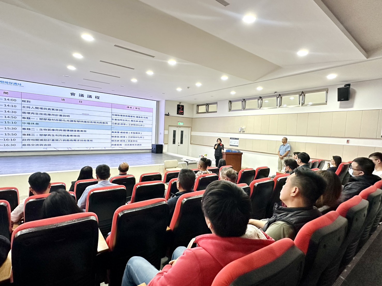 專題演講中,江叡涵博士進一步介紹AI光譜智慧分選技術,展示其在提升廢塑膠分選效率、降低雜質與強化再生料品質的應用成果;多智農技高美雯總經理則以生物質案例說明農業廢棄物如何透過技術轉換成高值化材料或能源,實現農廢循環;工研院材化所陳彥銘經理分享再生塑膠產業趨勢,協助業者掌握市場需求與材料規格;在專家座談與媒合交流中,各單位針對政府補助、技術落地需求與產業合作模式進行討論。