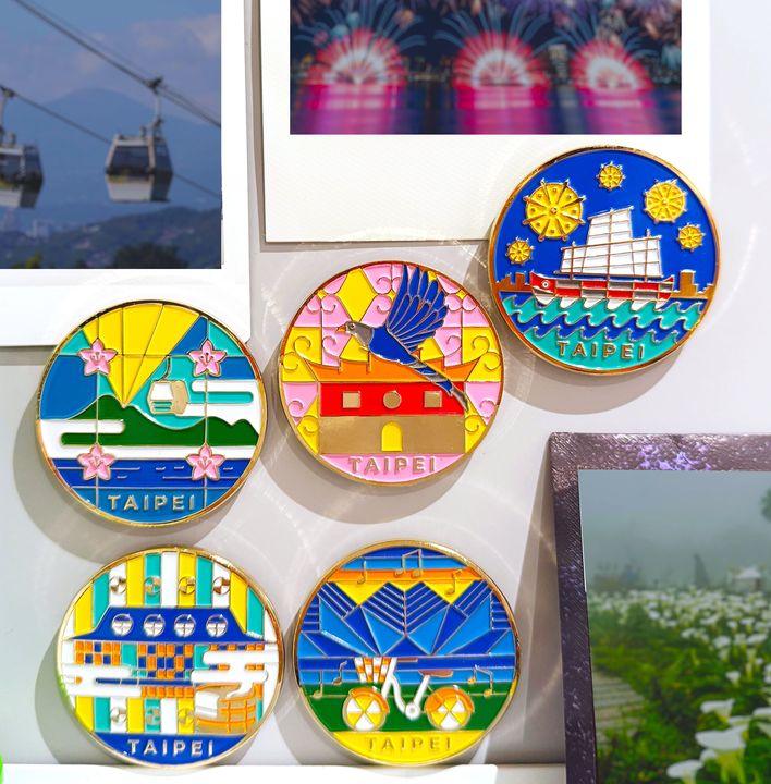 觀傳局表示,磁鐵兼具輕巧便利與實用性,一直是旅客最常購買的紀念品之一,本次以臺北街巷常見的窗花圖案,融入城市地標與文化風景,打造具設計性、文化性與實用性的「臺北城市紀念品」。五款「台北窗花磁鐵」,包含【城南款】以臺北市市花「杜鵑花」搭配俯瞰城市景致的「貓空纜車」,呈現城南風光與自然交織的浪漫;【城西款】以「臺灣藍鵲」及歷史地標「北門」,呈現建築記憶與城市生態並存的獨特氣質;【城西慶典款】以承載歷史的「戎克船」與繽紛奪目的「大稻埕煙火」,交織成復古與慶典感兼具的畫面;【東區款】以「臺北流行音樂中心」的線條,搭配穿梭街區轉動的「自行車」,象徵東區活力、創意與城市律動感;【北區款】則以「新北投車站」與繚繞白霧的「溫泉」意象打造療癒氛圍,呈現溫潤、悠閒與人文自然共存的療癒旅程,每款磁鐵都是極具臺北城市意象及文化創意。