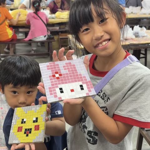 ▲親子網紅「安安一家」在板陶窯DIY馬賽克拼貼,體驗交趾剪黏工藝魅力。 圖:嘉義縣文化觀光局/提供