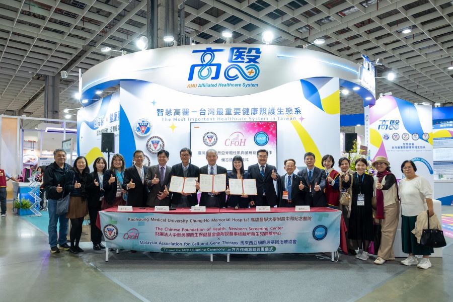 【記者 王雯玲/高雄 報導】高雄醫學大學附設中和紀念醫院在今年醫療科技展期間,由林宗憲副院長率領鐘育志教授脊髓性肌肉萎縮症(SMA)團隊,與財團法人中華民國衛生保健基金會附設醫事檢驗所新生兒篩檢中心及馬來西亞細胞與基因治療協會(MACGT)共同簽署合作備忘錄,宣示三方將攜手推動SMA臨床與新生兒篩檢合作,立足臺灣、走向全球,展現「臺灣隊」醫療軟實力。本次簽約在經濟部生技醫藥產業發展推動小組(BPIPO)全力支持促成三方合作,為跨國精準醫療合作奠定基礎。