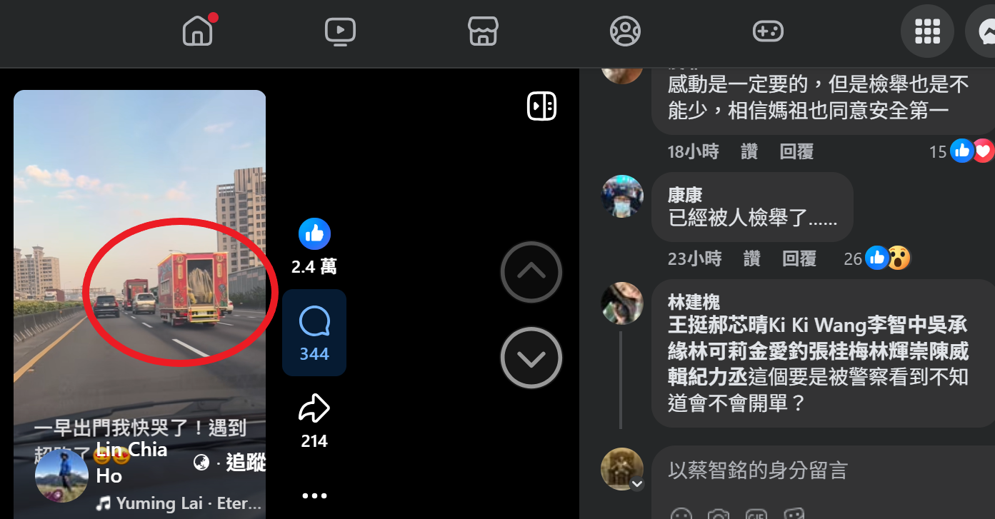 【Lai傳媒 記者爆料網/綜合報導】知名宗教盛事「白沙屯媽祖」上週末(12月6日至7日)前往高雄進行贊境活動,吸引大批信眾熱情參與。然而,活動期間卻爆出安全爭議。有民眾向媒體《記者爆料網》投訴並提供社群媒體影片連結佐證,質疑媽祖鑾轎護持隊伍中的拱天宮大轎組人員,竟在高速公路上,搭乘僅以透明塑膠硬布作為簡易防護的貨車後斗進行移動,此舉不僅讓網友直呼「太危險」,更涉嫌違反《道路交通管理處罰條例》。