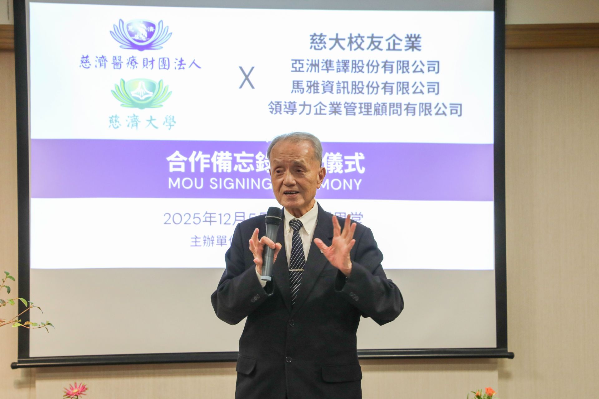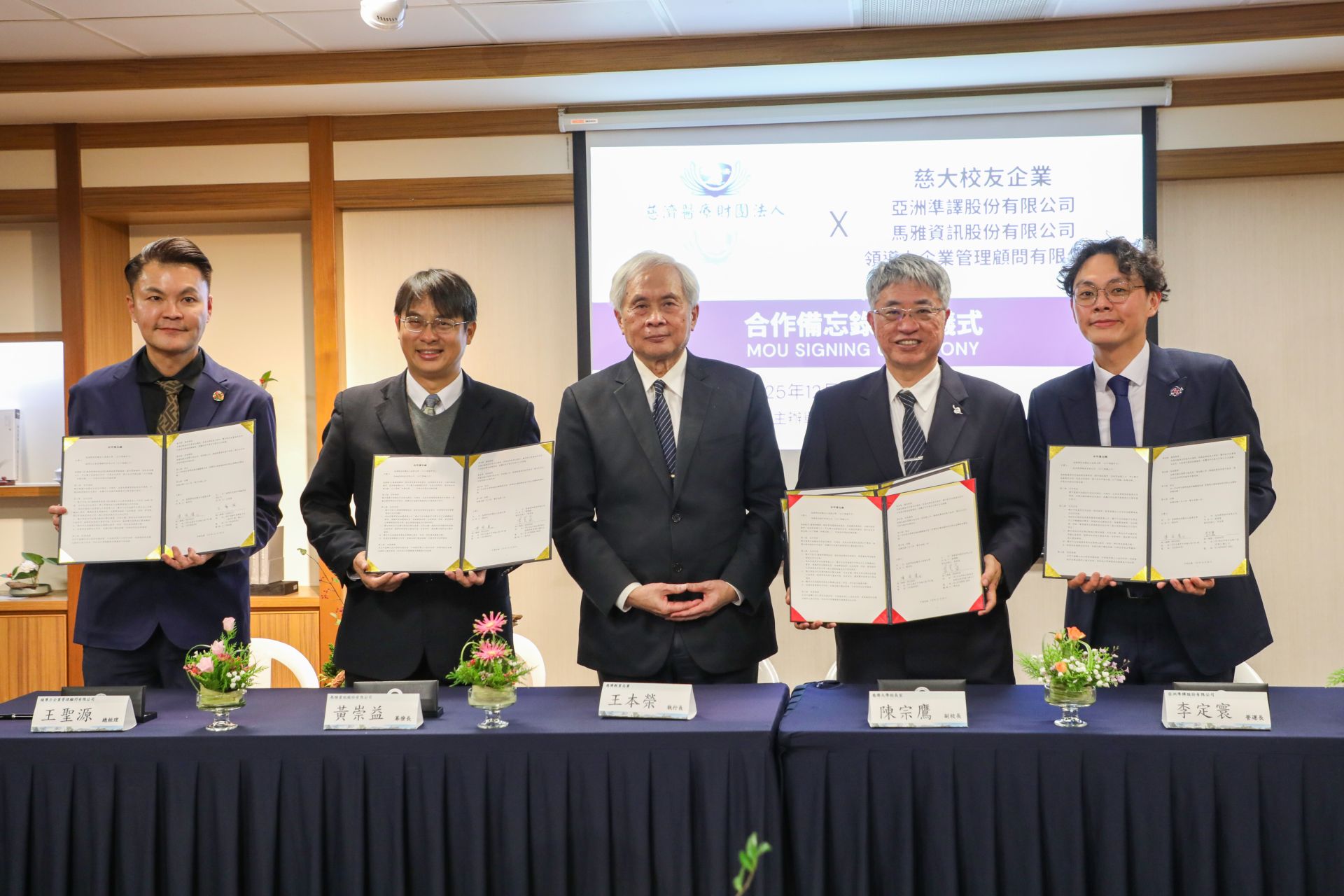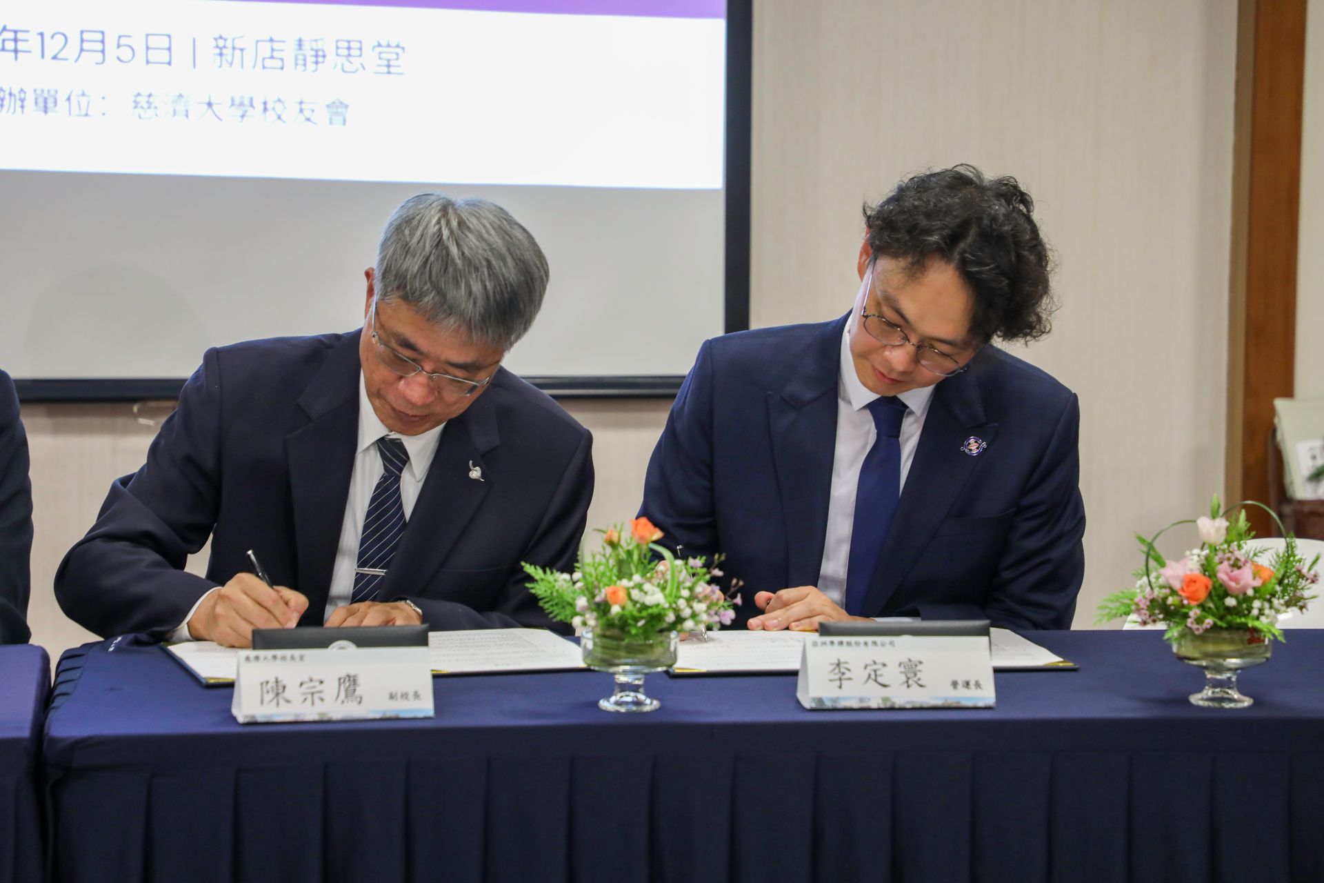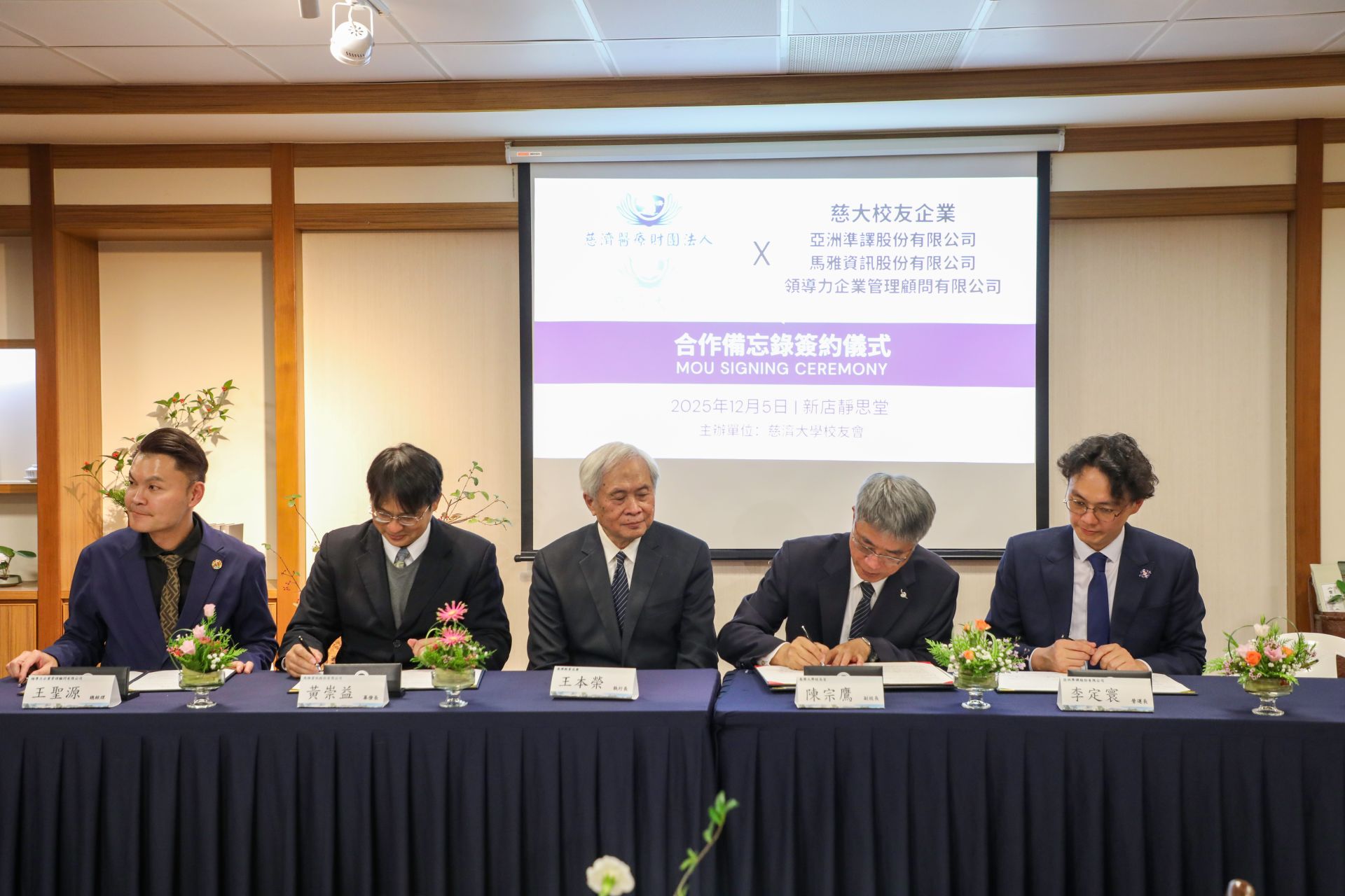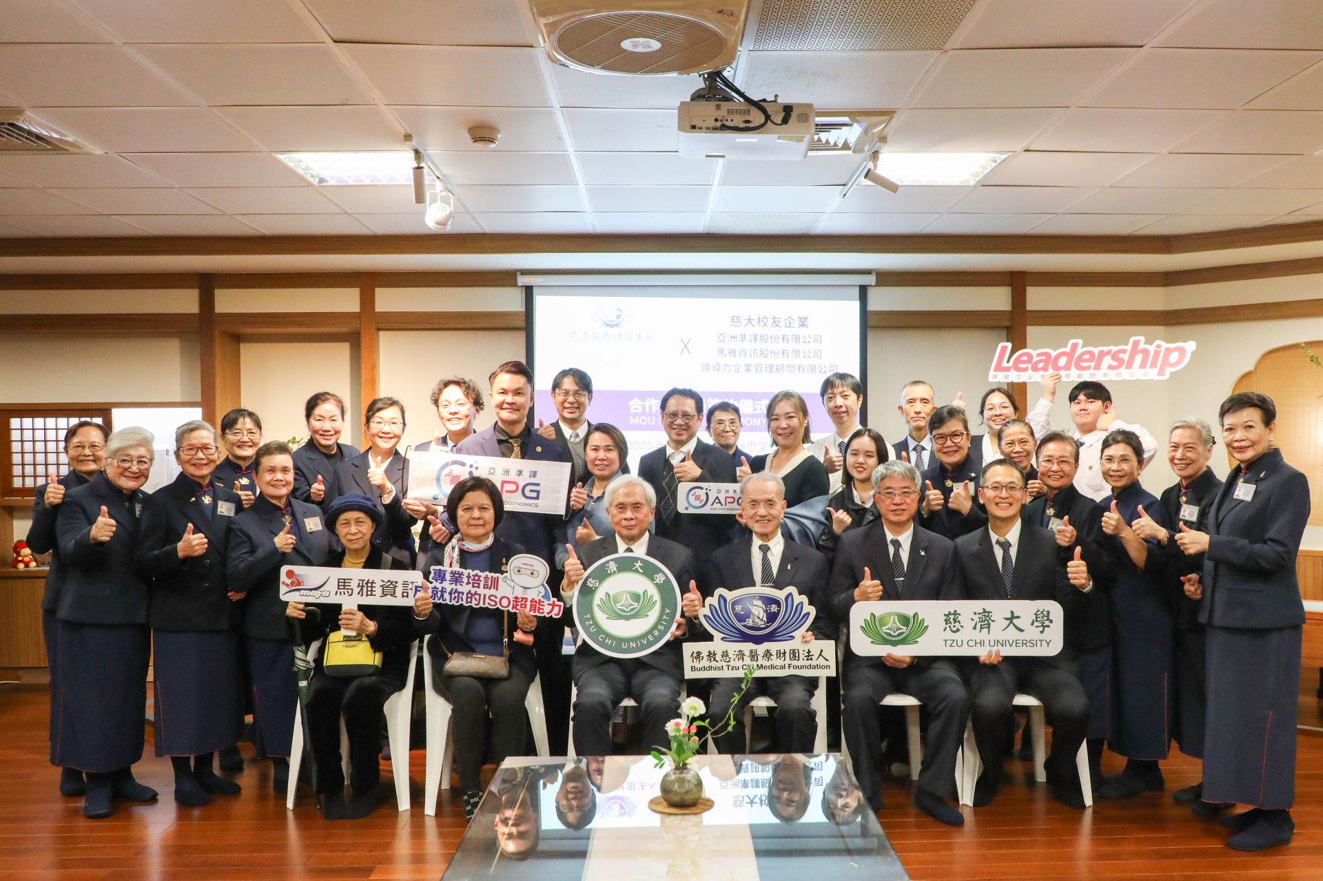 簽約現場由醫療志業林俊龍執行長、教育志業王本榮執行長、慈濟大學陳宗鹰副校長、慈大校友會張群明理事長與三位企業校友共同簽訂。企業校友分別是馬雅資訊黃崇益幕僚長(第一屆公衛系校友),投入在醫療生理資訊傳輸,包含血液透析、呼吸、麻醉、加護病房等醫療資訊傳輸與連結。亞洲準譯李定寰營運長(第五屆公衛系校友),專精在病原體基因定序檢測,提供定序儀及定序試劑。領導力企業管理顧問公司王聖源總經理(第五屆公衛系校友),協助企業建立完善的管理制度,致力於ESG輔導、碳盤查、碳足跡查證,各式ISO稽核員及企業內訓。