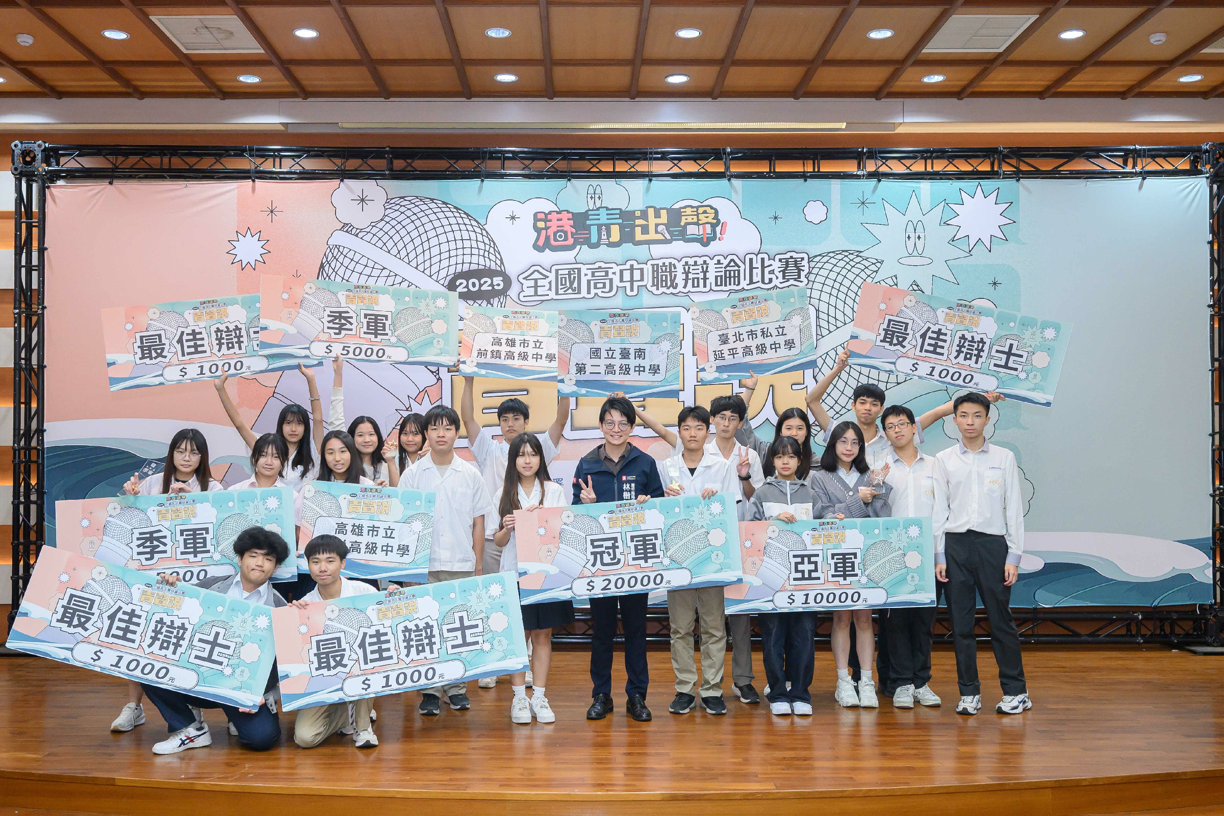 比賽自初賽一路進入八強、四強到最終冠軍戰,各隊均以縝密分析拆解對手論點並提出替代方案,展現青年深厚的思辨力與公共素養。最終由國立臺南二中以全面論證與強大臨場反應奪下冠軍;臺北延平中學獲得亞軍;高雄前鎮高中與瑞祥高中則以亮眼表現並列季軍,獲得評審一致肯定。