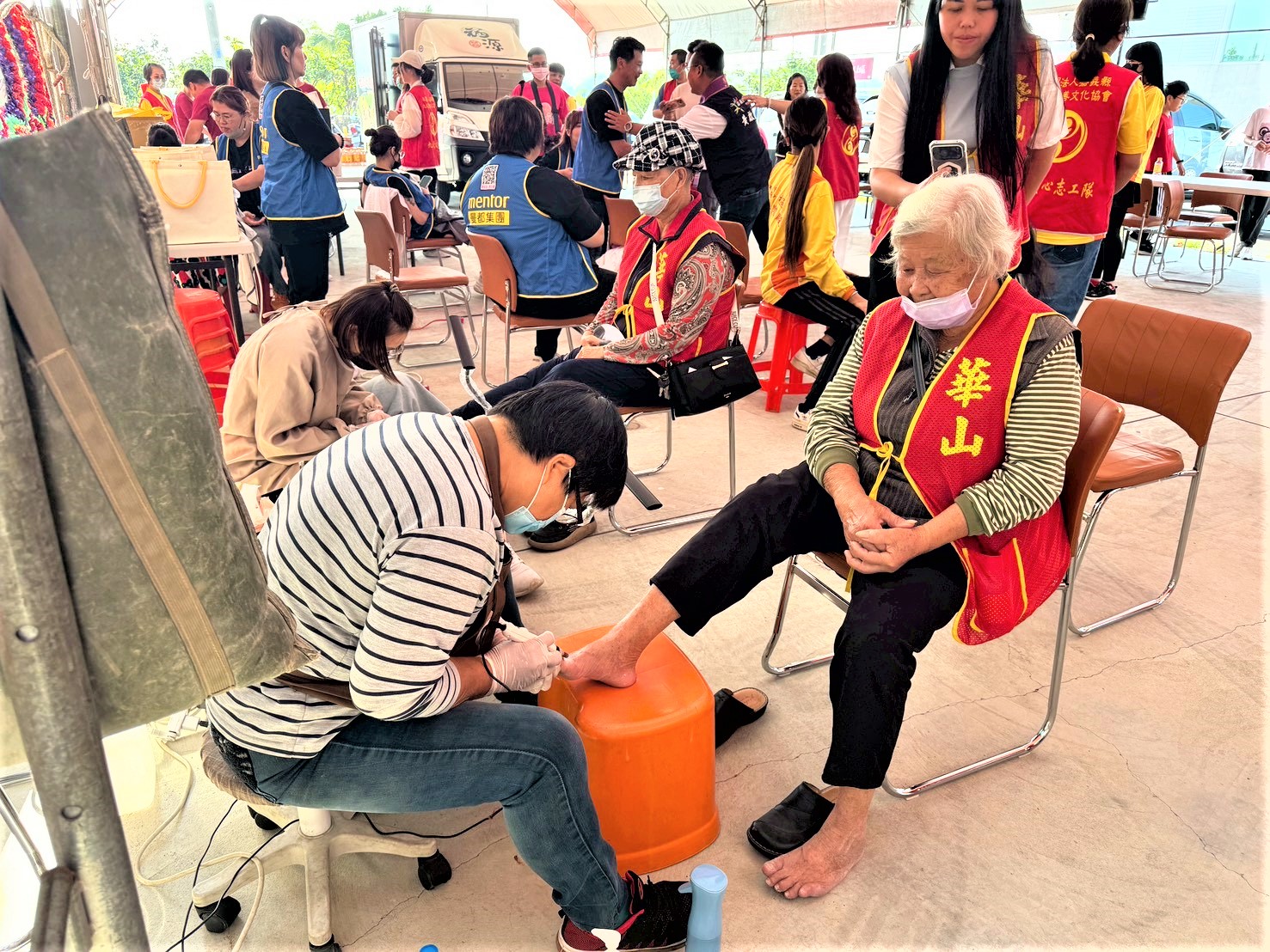 社團法人嘉義縣九九慈善文化協會秉持回饋社會、扶助弱勢的宗旨,連續五年支持華山基金會,今年亦捐贈5萬元,現場準備大支票進行受贈儀式,希望拋磚引玉,號召更多善心人士響應偏鄉及弱勢長輩的社區到宅服務。理事長陳怡樺表示,入火安座週年暨十九週年殿慶同時是協會的「義工日」,全體會員化身一日志工,實踐母娘慈悲為懷的精神,也呼籲社會大眾共同投入善行,為需要協助的族群帶來力量、促進社會祥和。