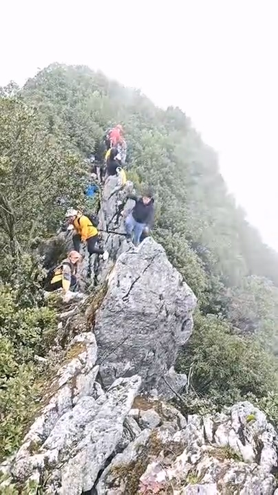 登山客在陡峭路段行走時滑手機,結果腳滑摔下懸崖,疑為當事人的登山客事後發文說摔了40公尺,又滾了15公尺。