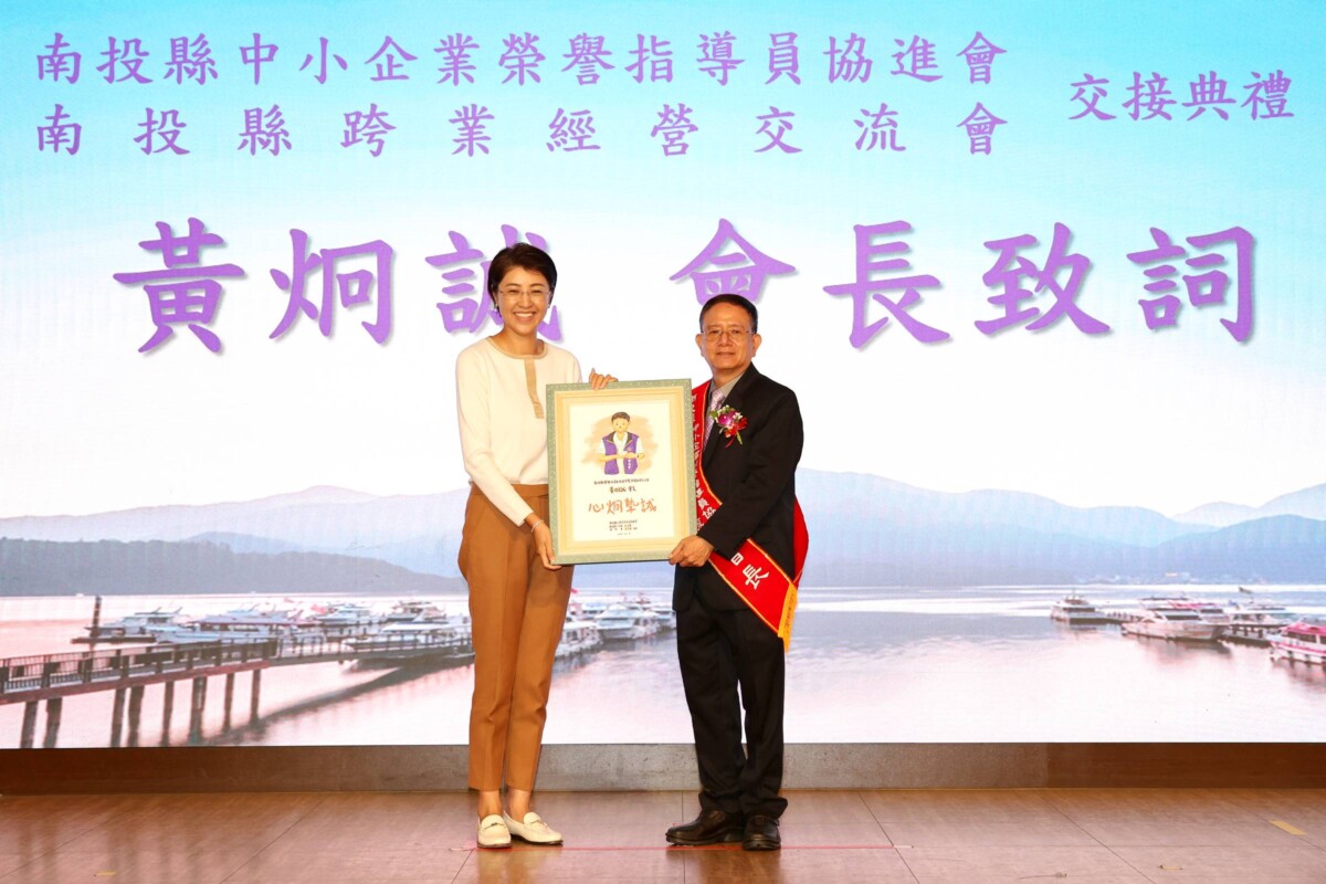 【記者 謝雅情/南投 報導】南投縣中小企業榮譽指導員協進會暨跨業經營交流協會9日盛大舉行會長交接典禮,縣長許淑華偕同來自苗栗、臺中、彰化、雲林及南投等中台灣五縣市的中小企業榮譽指導員與產業先進,共同見證這具指標意義的時刻。典禮中,由卸任會長周水來將重擔交棒予新任會長黃炯誠,象徵南投在地產業服務將從單線連結邁向區域共同治理,持續深化中台灣產業競爭力。