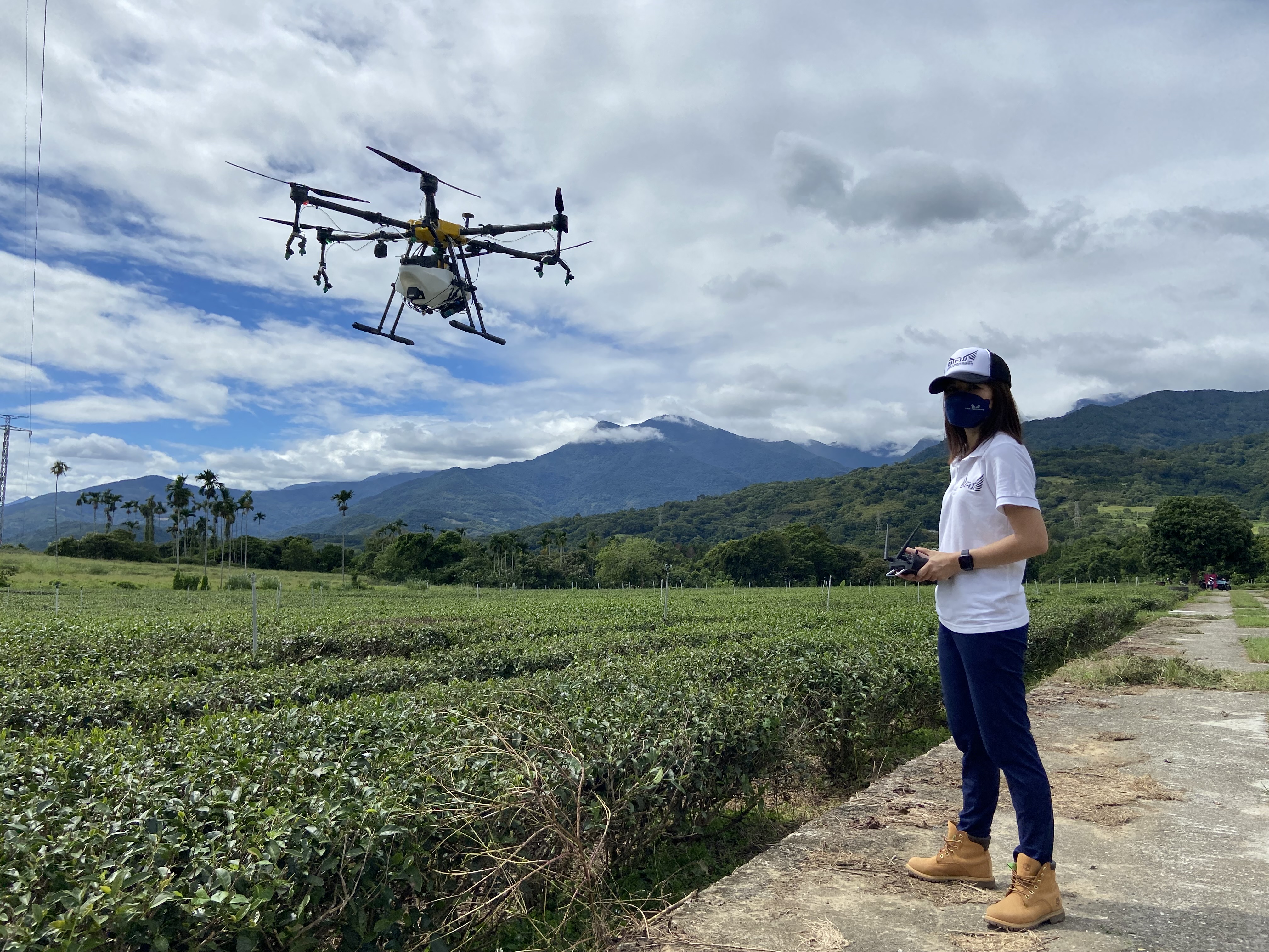 農用無人植物保護機幫助農民省工,發展前景看好,有愈來愈多女性取得證照,投入第一線工作。(圖片來源:張詠婷提供)