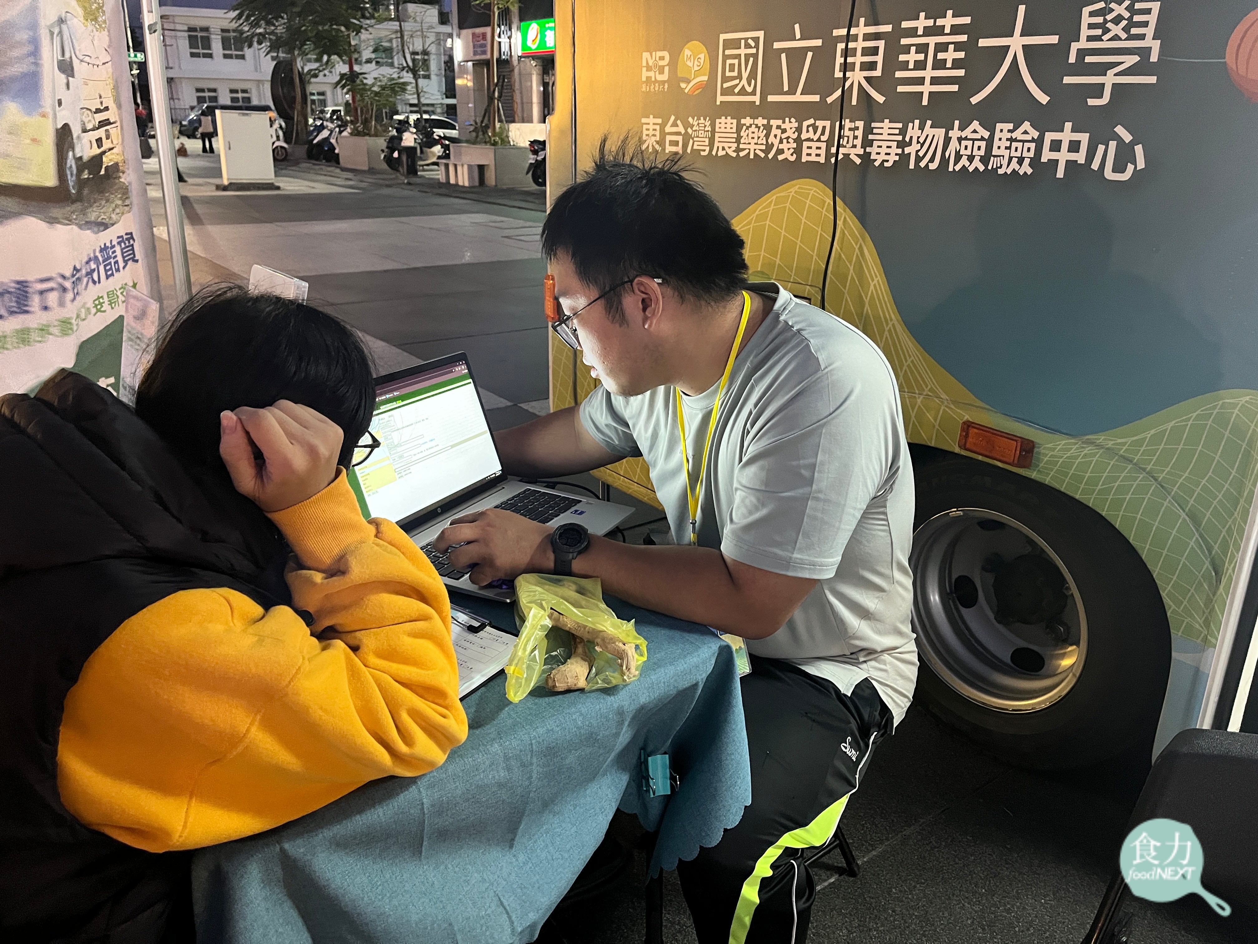 為食安把關,國立東華大學東台灣農藥殘留與毒物檢驗中心,日前向農業部農糧署申請一半經費成立「質譜快檢行動檢測車」,巡迴東部提供新鮮蔬果農藥殘留質譜快篩檢測服務。2025年花蓮食農博覽會11月26日至30日舉辦期間,現場共收到82件檢體,包括文旦、香蕉、大陸妹、薑、南瓜、青江菜、萵苣、紅藜、白米及玉米筍。