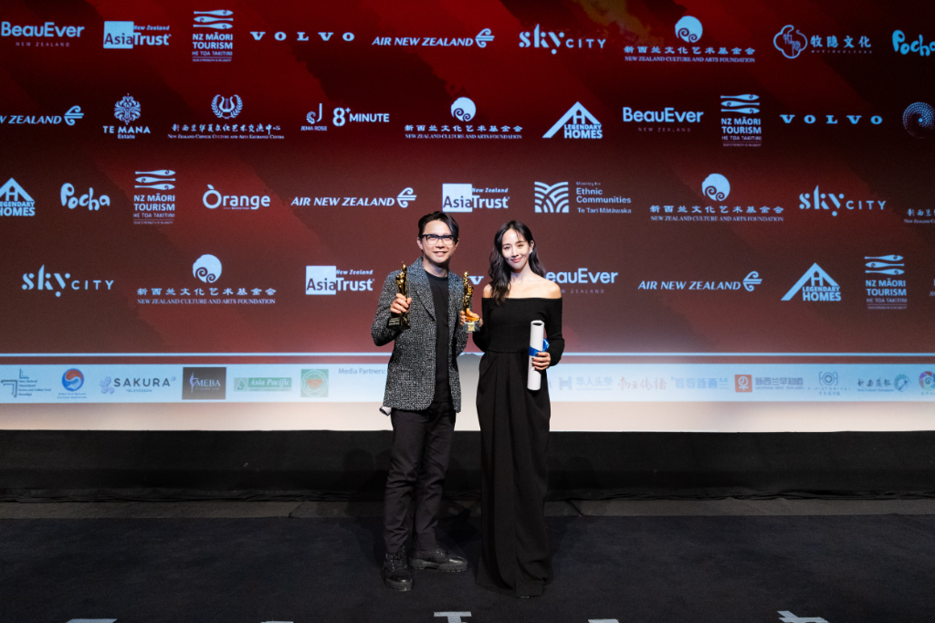 ▲ 電影《默殺》導演柯汶利(左)﹑張鈞甯出席「紐西蘭亞太電影節」獲頒最佳女主角、最佳導演獎項 。 (圖:JUST FILM)