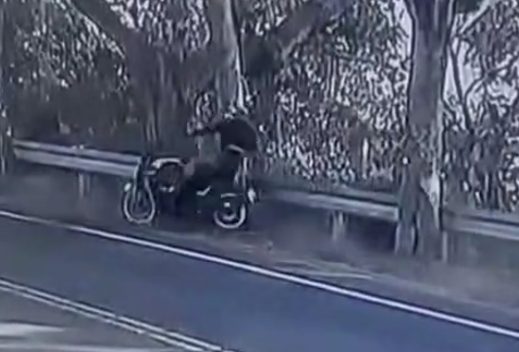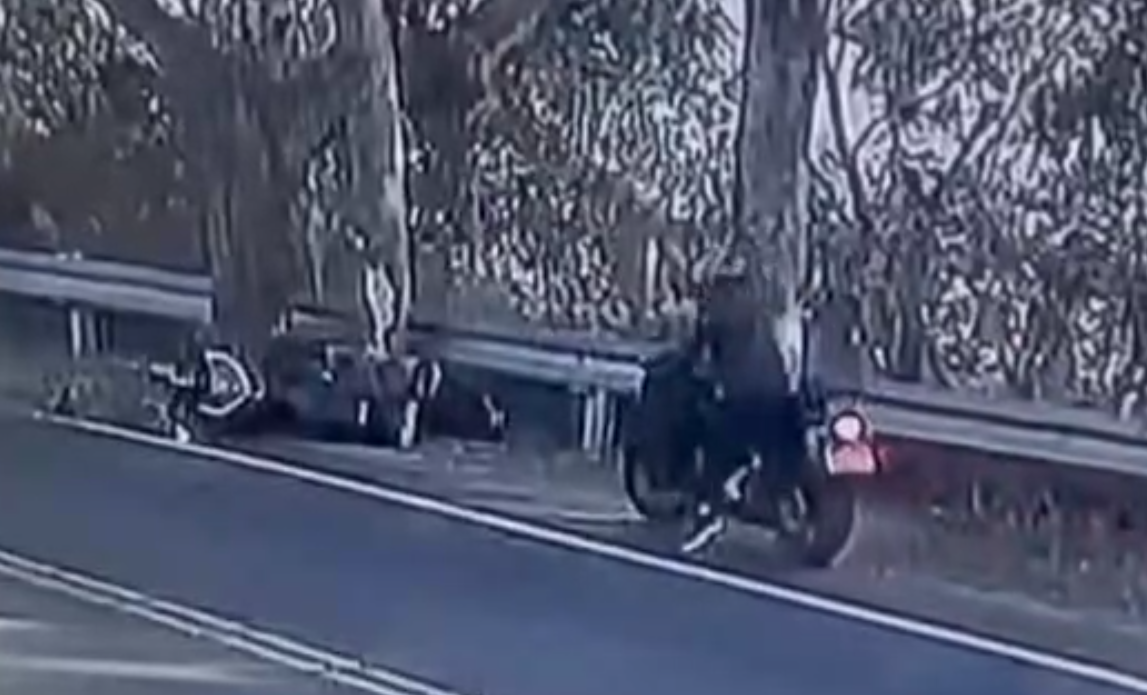 大型重機騎士撞擊後倒地昏迷,車友趨前查看。翻攝畫面