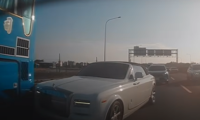 【Lai傳媒、記者爆料網/周庭慶/雲林報導】民眾PO網一段影片,內容是12月7日下午1輛勞斯萊斯轎車行經國道1號北上西螺路段,因前方塞車勞斯萊斯換車道結果與1輛遊覽車擦撞,網友質疑「勞斯萊斯變換車道未禮讓直行車,及未保持安全距離導致事故」還留言「看 得出來學長挺氣的!」