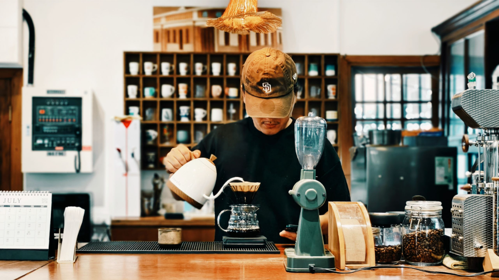 他笑著說。攪拌、煮沸、淋醬——每個動作都像一次記憶的重現。火焰讓食材釋放香氣,也讓人與土地重新連結。當蜂蜜的甜、梅子的酸、茶的苦在口中層層交融,那不僅是味道的碰撞,更是一場文化的再煉;再度成為傳遞記憶與交流的地方。旅人坐在木窗下,一口甜點,一口咖啡,感受到的不只是滋味,而是六龜土地的熱度與人情。
