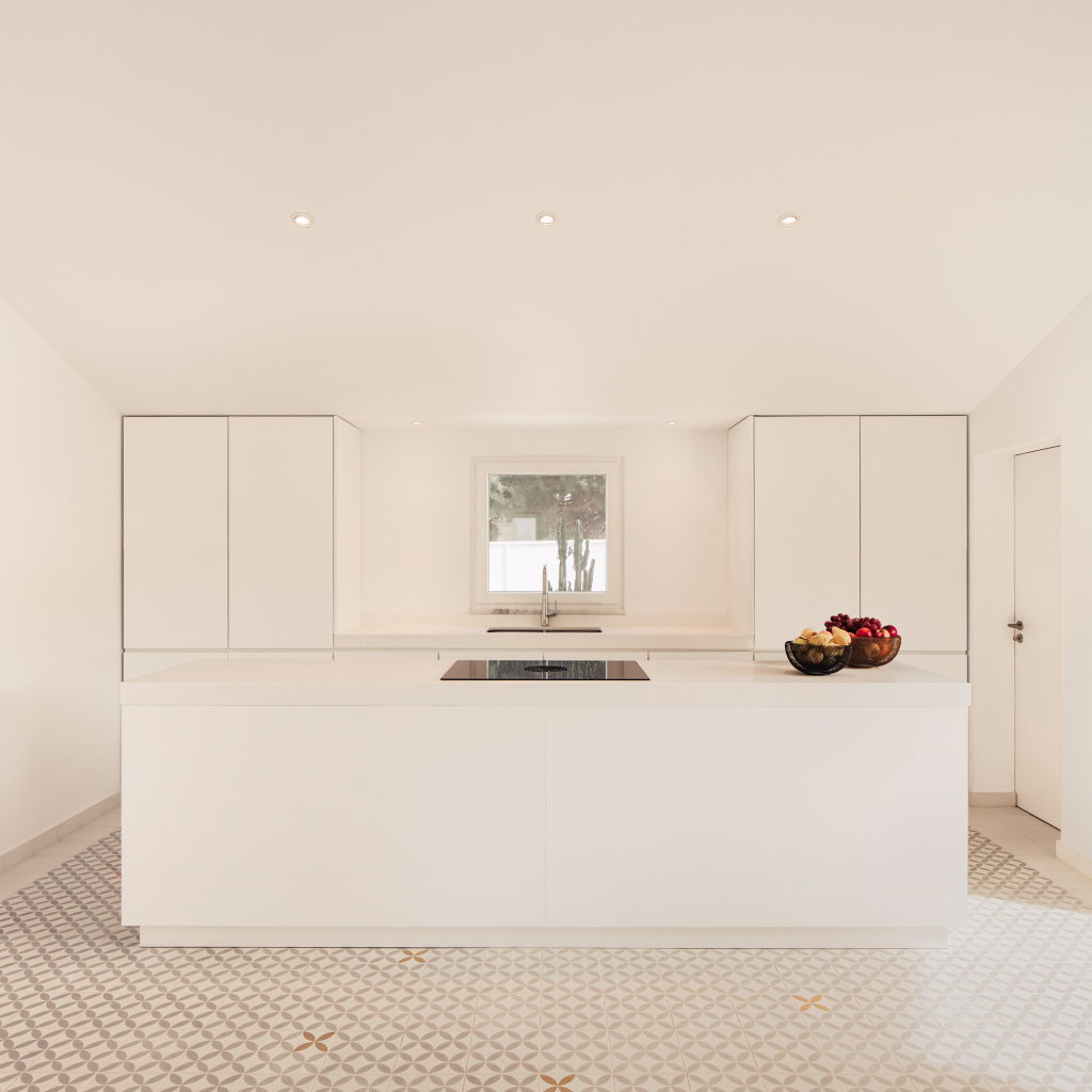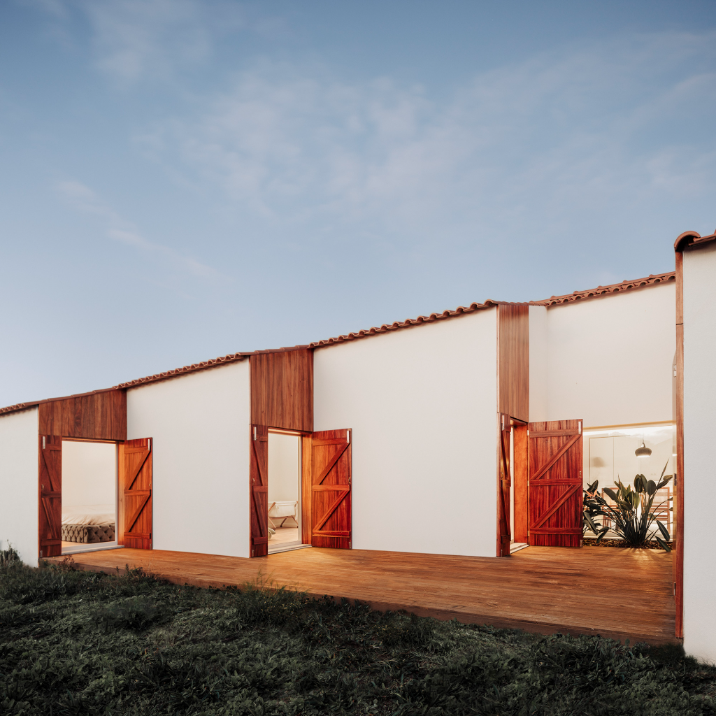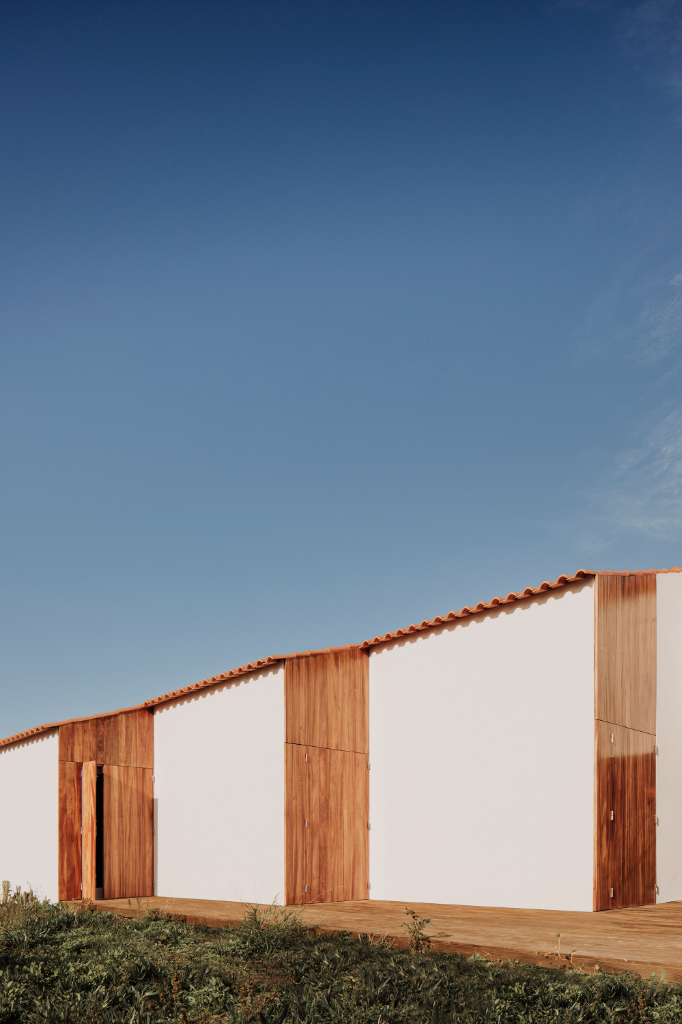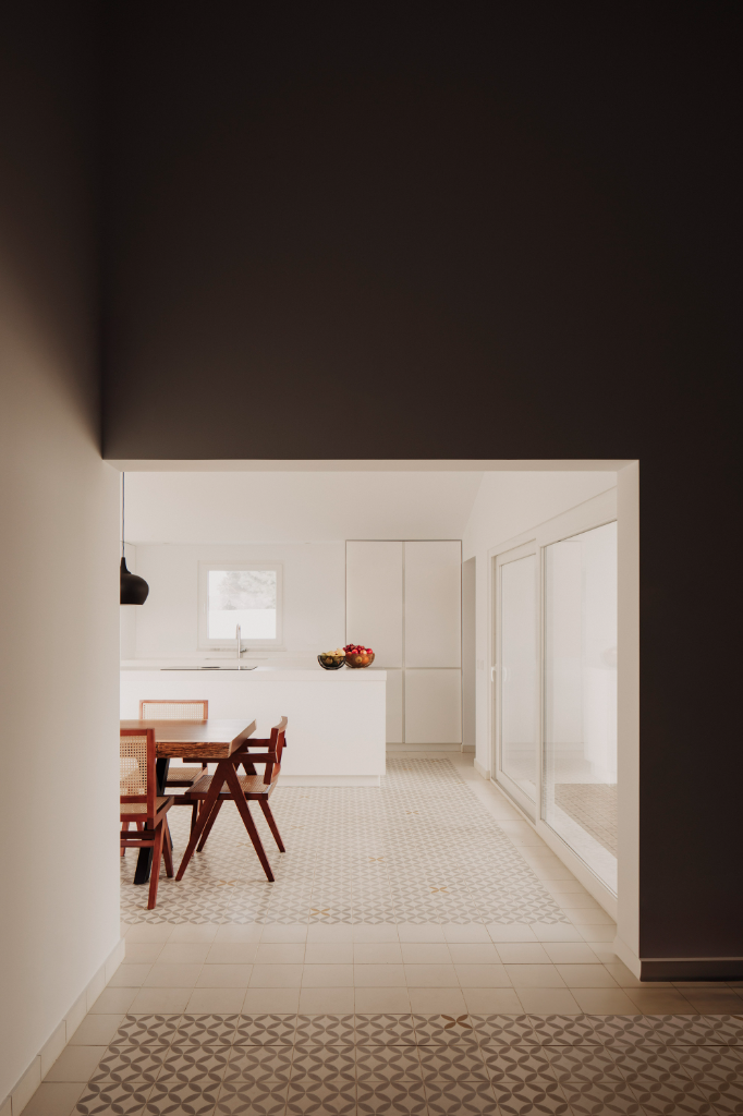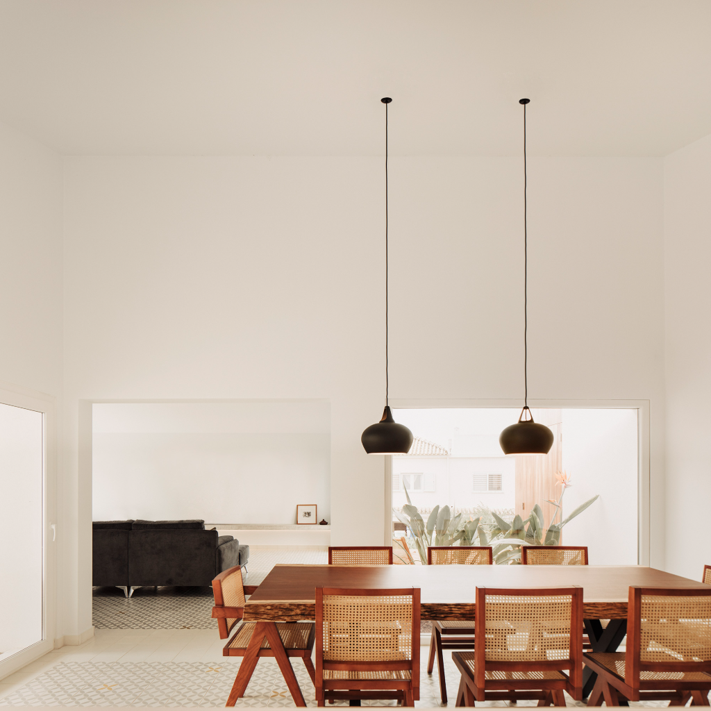 Casa no Meco是位於葡萄牙Aldeia do Meco小村莊的一座單戶住宅。這個村莊以低矮和傳統的建築風格著稱,然而在80年代,該地區開始出現大規模且單調的建築,逐漸破壞了原有的鄉村風貌。為了回應這一挑戰,全新的設計項目應運而生。有別於「特立獨行」的設計概念,屋主希望保留村莊中的一些傳統建築元素,並以創新的設計手法使其脫離陳舊形象。白色的牆面、簡潔的線條和開放的空間布局,不僅與周圍環境相得益彰,還賦予了這座住宅獨特的現代感。