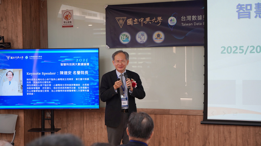 【 大成報記者蕭宇廷/臺中報導 】國立中興大學12/11在資訊科學大樓國際會議廳,舉辦「2025智慧科技與大數據論壇」該場論壇由臺灣數據與AI學會主辦,興大數據與人工智慧專業學院暨相關系所共同承辦、大數據中心協辦,吸引近百位產官學研各界人士參與;活動聚焦智慧醫療、智慧農業、智慧視覺、智慧交通及智慧金融等5大領域,旨在匯聚跨域能量、深化智慧數據應用交流,並激發產學合作契機。