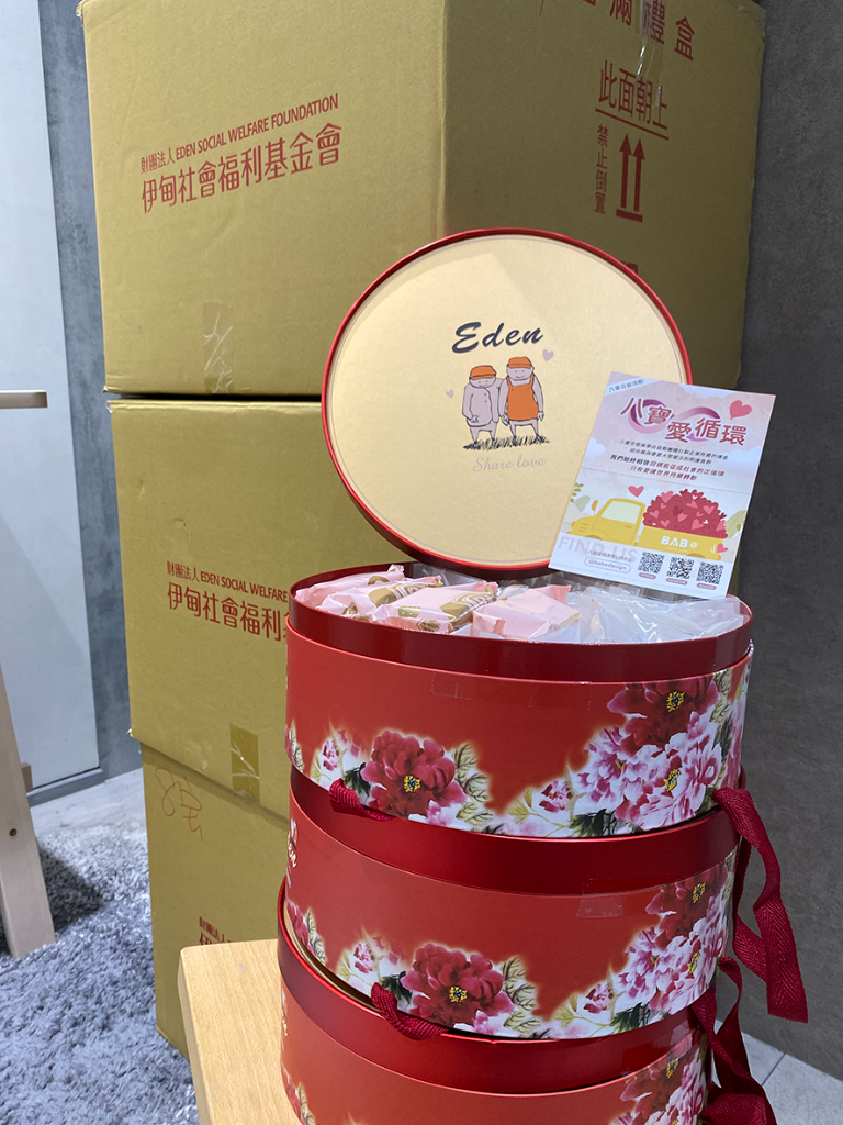 2025年的中秋、重陽雙節前夕,設計品牌 八寶空間美學 發起「八寶愛循環」計畫,向伊甸烘焙咖啡屋訂製節慶所需禮盒,更親自搬運部分禮盒,將其送到需要大眾關注的弱勢族群手中,使育幼院兒童、社區長輩,以及在背後默默付出的照顧者們,都能在溫馨幸福的活動中度過佳節時光。