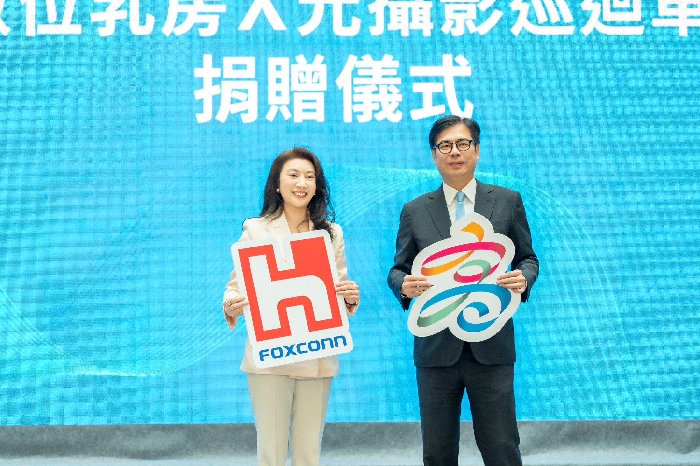今日典禮也舉行乳房X光攝影巡迴車捐贈儀式。鴻海得知市府需求後,由楊秋瑾代表企業捐贈一台巡迴檢查車,支援偏鄉婦女健康照護,展現企業回饋社會的公益精神。