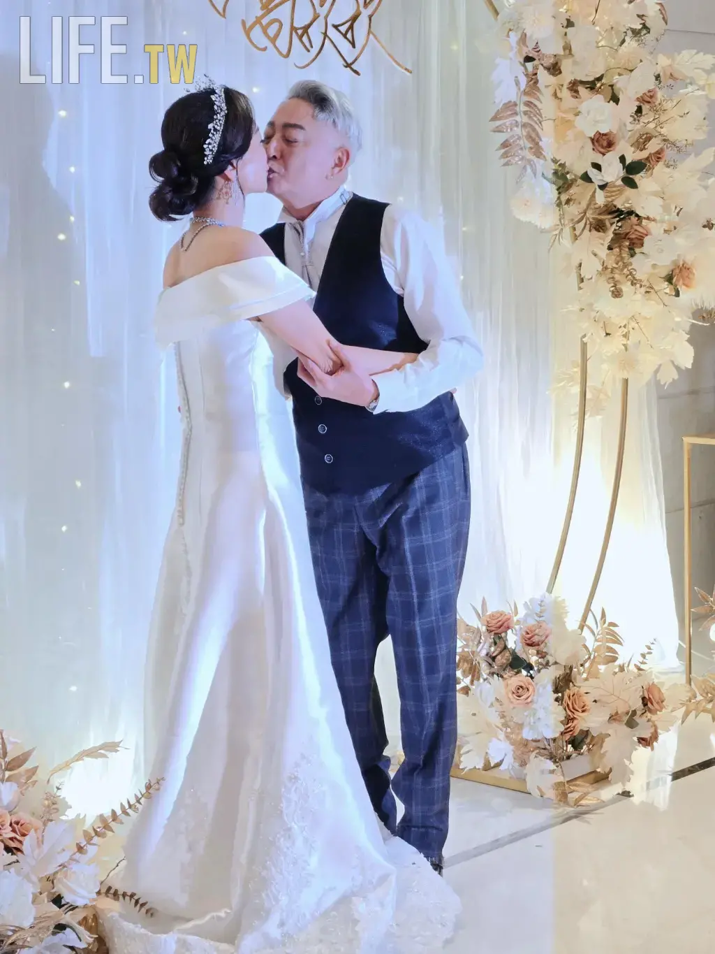 面對媒體鏡頭,李國超感性發言,語氣哽咽:「等待了這麼久,終於能給欣欣一個正式且盛大的身份。謝謝她這二十多年的陪伴與包容。這份愛是遲到,但絕對是更美好的圓滿。」高欣欣則甜笑回應:「謝謝所有人的祝福,我們往後會繼續將日子過得簡單、幸福。」兩人更應媒體要求,大方甜蜜親吻放閃,將現場氣氛推向溫馨浪漫的最高點。