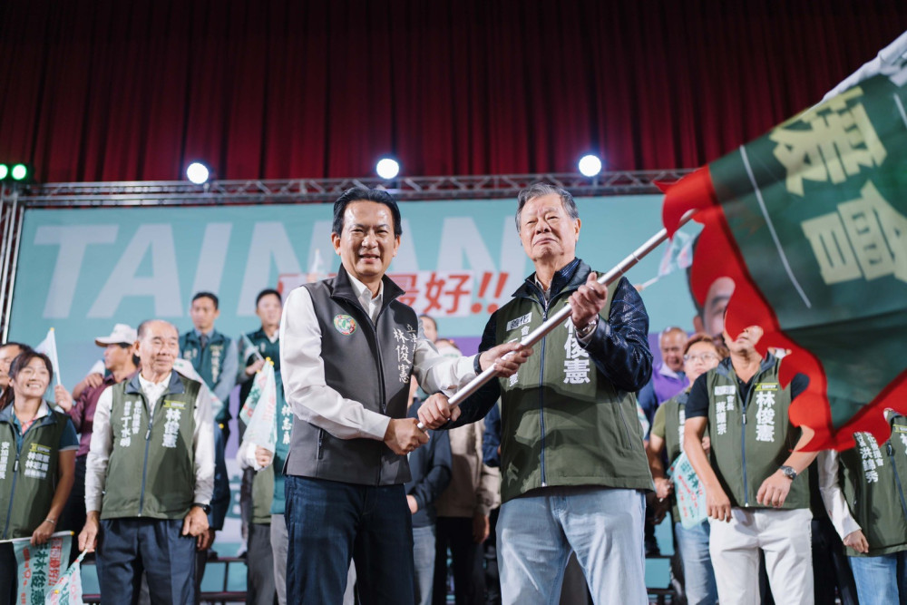 【勁報記者杜忠聰/臺南報導】民進黨立法委員林俊憲14日在善化區舉辦「善化、安定後援會成立大會」,現場湧入超過3,000名支持者,旗海飄揚、氣氛熱烈。台南市長黃偉哲親臨現場大力支持,多位市議員及在地里長皆到場力挺,場面盛大,頗有世代交棒的象徵意味。