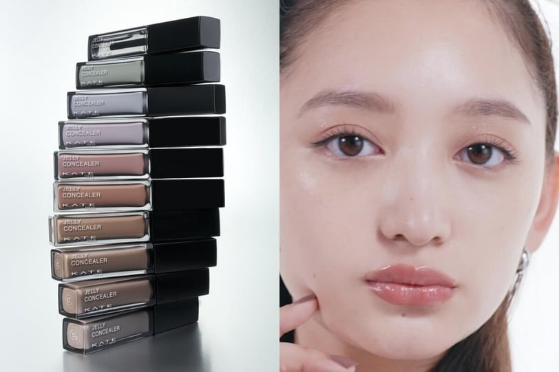 KATE 最新推出的凝光校色遮瑕液採用「美容液凝露」打造高服貼度,塗上後會形成柔滑貼膚塗膜,全天保持遮瑕力與潤澤感。添加玻尿酸、菸鹼醯胺與珍珠蛋白等保濕亮膚成分,提亮後不會因皮脂而暗沉,透明款能在陰影處打造自然光澤,月色珠光粒子細緻、光感乾淨不顯毛孔,還有多款校色遮瑕款式,可以針對黑眼圈或是暗沈做修飾,適合想要提升面中亮度又怕過度反光的人。