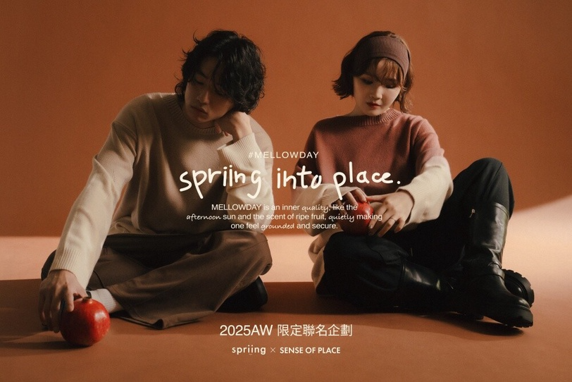 由台灣知名穿搭 YouTuber 春春創立的服飾品牌 spriing 再次攜手日本人氣品牌 SENSE OF PLACE,推出冬季第二檔名聯系列「MELLOWDAY」-關於沉澱、成熟,並將生活重新調回「剛剛好節奏」的冬日主題。全系列將於 12/9 19:00 正式於 spriing 官網上架販售;12/10 將於 SENSE OF PLACE 限定門市販售。