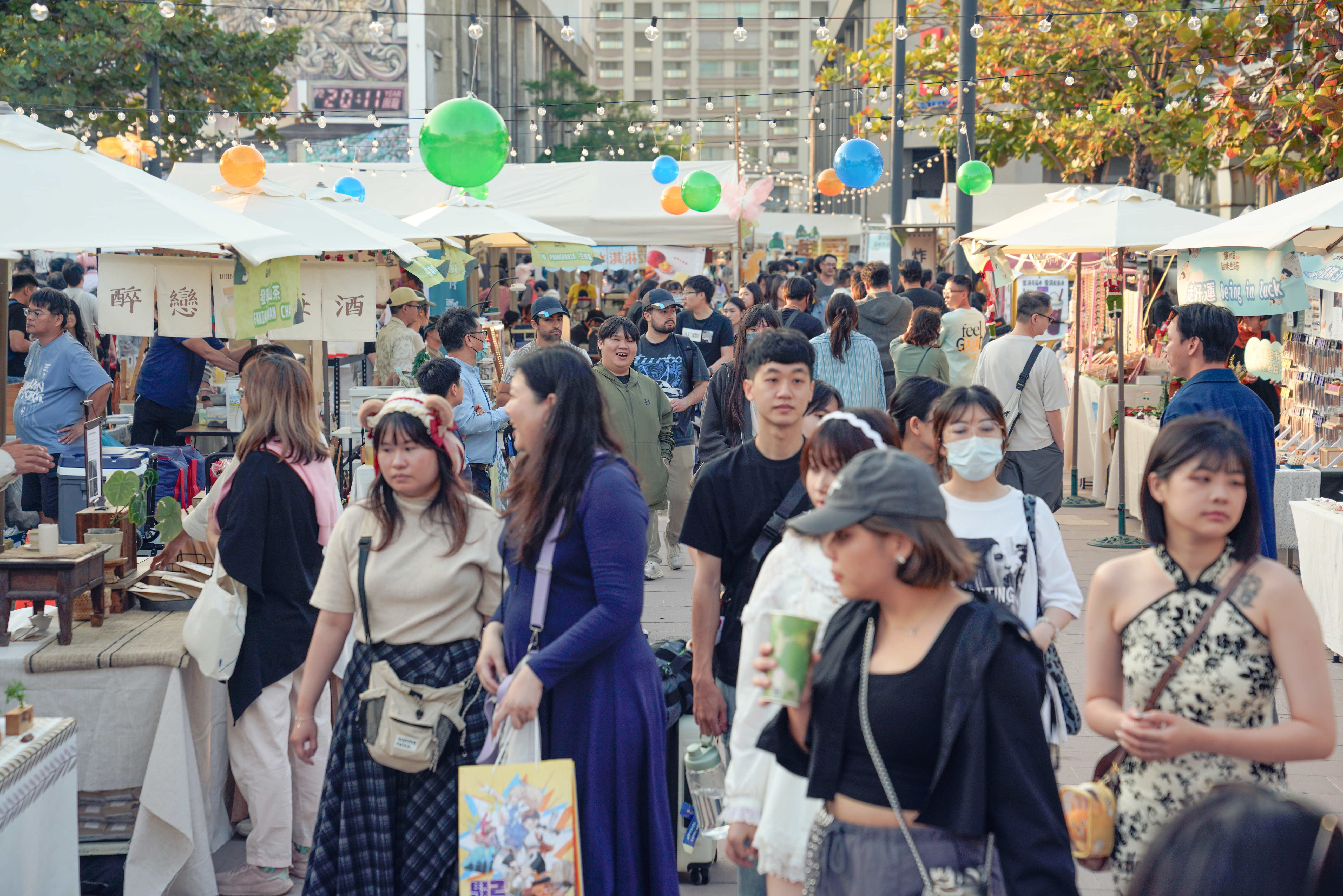 號倉庫熱鬧登場,現場青創市集匯聚64組特色攤位,吸引許多民眾相共襄盛舉。(圖片來源:高雄市青年局提供)