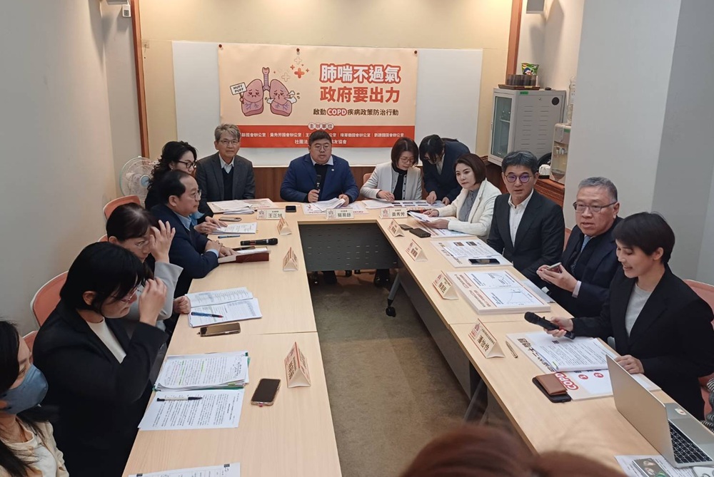 慢性阻塞性肺病(COPD),長期位居10大死因之列。年輕病友協會理事長潘怡伶表示,由於缺乏跨部會、系統性的國家級防治計畫,今(15)日與立法委員蔡易餘、黃秀芳、王正旭、陳菁徽、劉建國等人,共同以「肺喘不過氣,政府要出力」為主題,公開呼籲政府將COPD納入「健康台灣」長期慢病管理,降低再住院率、改善患者生活品質及縮短不健康餘命目標前進。