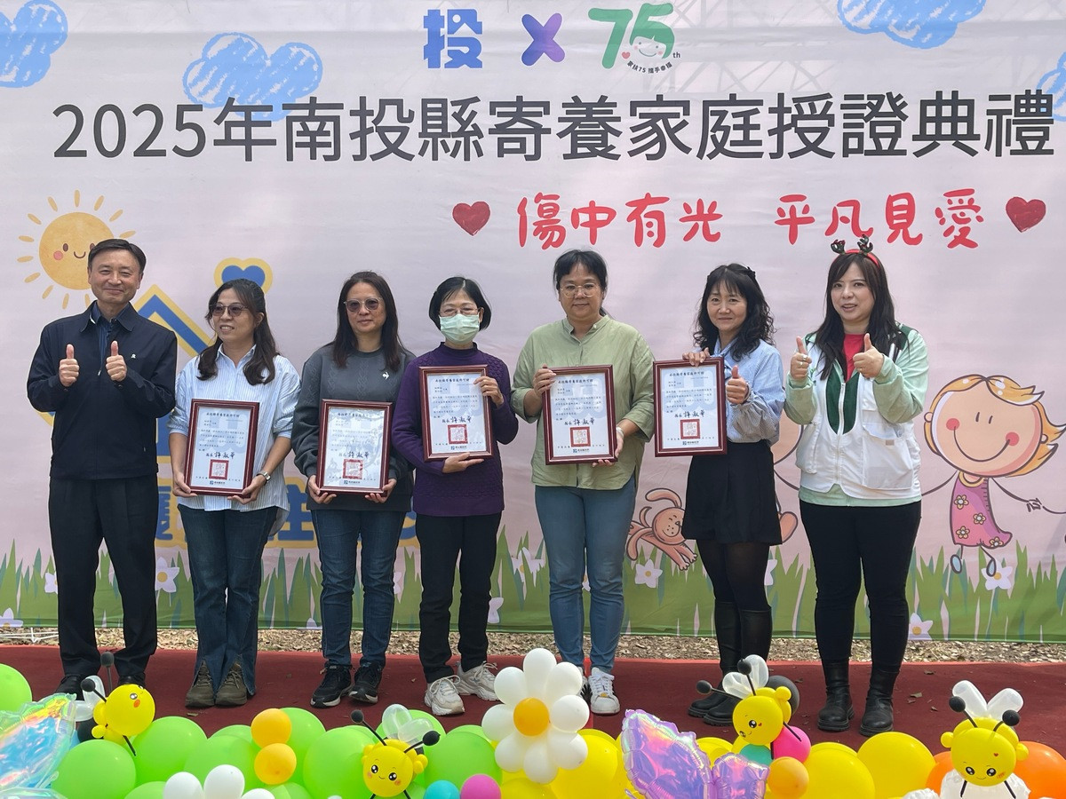 南投縣社勞局林志忠局長頒發寄養家庭許可證。(南投家扶提供)