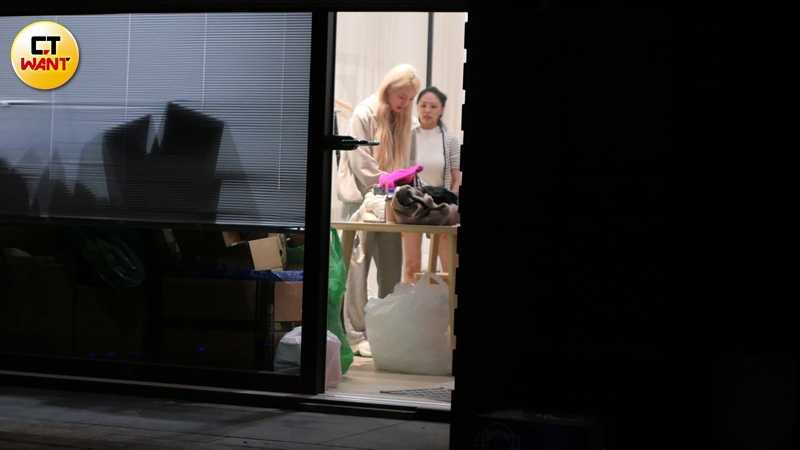 11月23日晚間8點,熊熊搭乘老公駕駛的白色賓士休旅車抵達台北市南港區一處服飾店,帶著眼鏡的熊熊一下車便往店內走去,而穿著拖鞋的老公則忙著將後車廂內的數袋衣服搬進店內,任務完成便驅車離去。