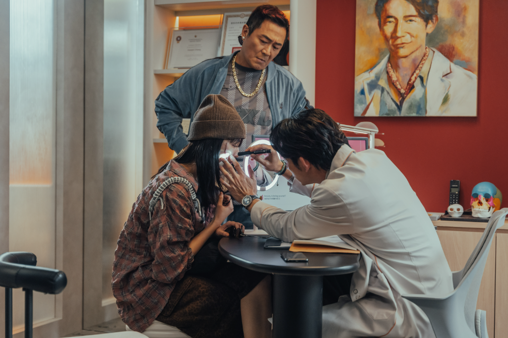 ▲ 《整形過後》湯志偉(後)飾演王渝萱(前排左)父親,同時也是嚴密監控的經紀人。(圖:六魚文創)