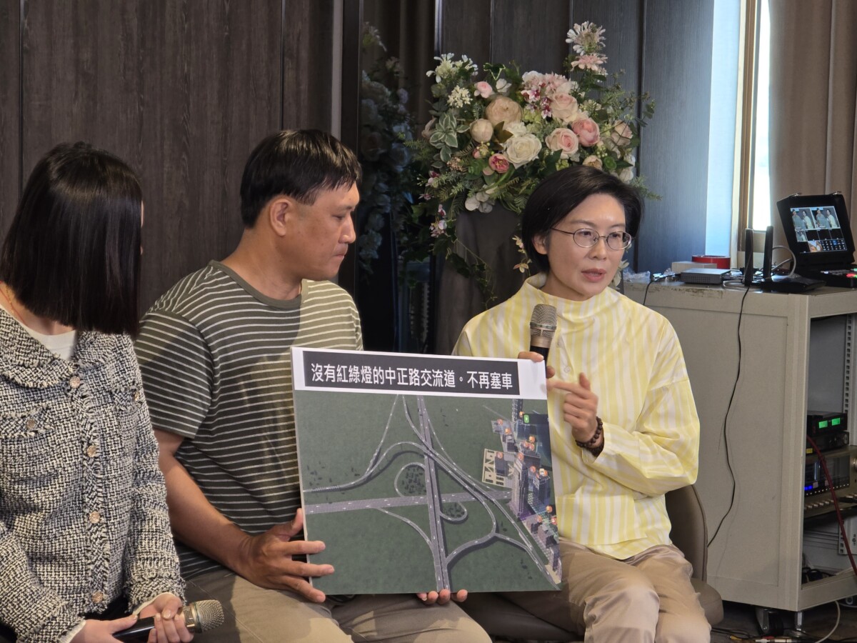 在交通方面,她點出國道匝道紅綠燈是塞車關鍵,並具體承諾,若當選,四年內完成「沒有紅綠燈的中正路交流道」建設;同時導入即時停車資訊系統,擴大智慧停車格,提升找車位效率。道路安全方面,則規劃由公車、清潔車偵測坑洞,24小時內完成修復。