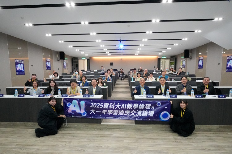 論壇同時安排兩場議題對談,透過現場與會者即時提問,促成講者間深入而熱絡的交流。計畫主持人、雲科大創意生活設計系杜瑞澤教授表示,設計學院近年亦積極推動院級通識課程,期望學生能具備基本的 AI識讀與倫理素養,從「懂用AI進階到「善用AI」,並逐步形塑自身的學習方向與價值定位。協同主持人蔡旺晉教授則指出,雲科大不僅鼓勵教師投入數位素養教學,也透過計畫支持辦理多場教師與學生專業增能活動與工作坊,完善大一新生的學習支持機制,亦使學校近年就學穩定率持續維持良好表現。另一位協同主持人王瀞苡教授亦強調,雖然計畫終有階段性任務完成的一天,但面對數位浪潮與新世代學生,教學若停滯不前,將難以回應教育現場的實際需求。透過跨院合作與交流,期盼未來能深化跨域素養導向教學,讓雲科大在推動數位素養的同時,也能兼顧AI教學倫理與學生學習適應,打造更具韌性的高等教育環境。