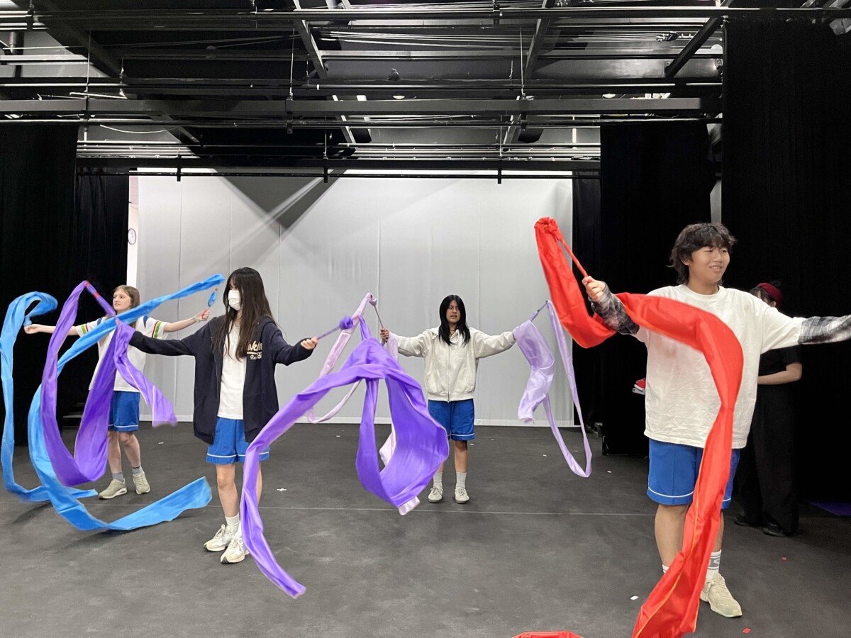 ▲學員練習水袖甩、收、控的基本動作,透過手腕發力、袖幅軌跡與控制,體會戲曲在力道、節奏與身段協調上所需要的動作要求與技巧。