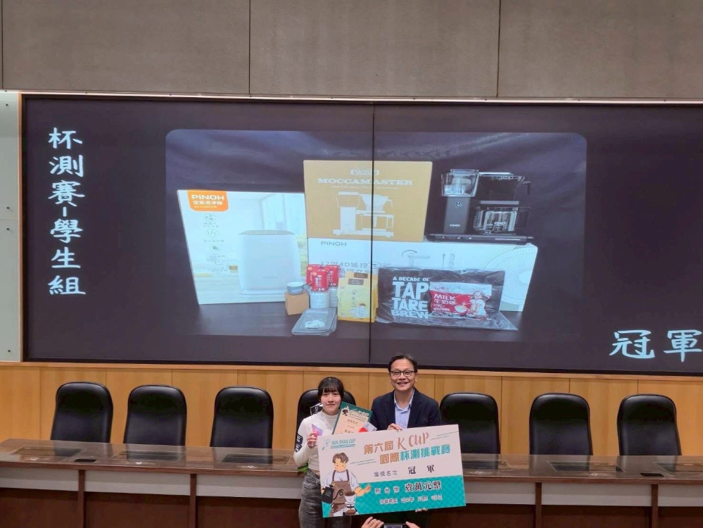 【大成報記者杜忠聰/臺南報導】嘉南藥理大學食品科技系陳筑婷同學,日前參加「2025年第六屆K Cup 國際咖啡挑戰賽」,憑藉著精準的味覺與嗅覺,一路過關斬將,以全對「大滿貫」優異成績,勇奪杯測組冠軍,展現了嘉藥食品系在感官科學教育上的卓越成果。