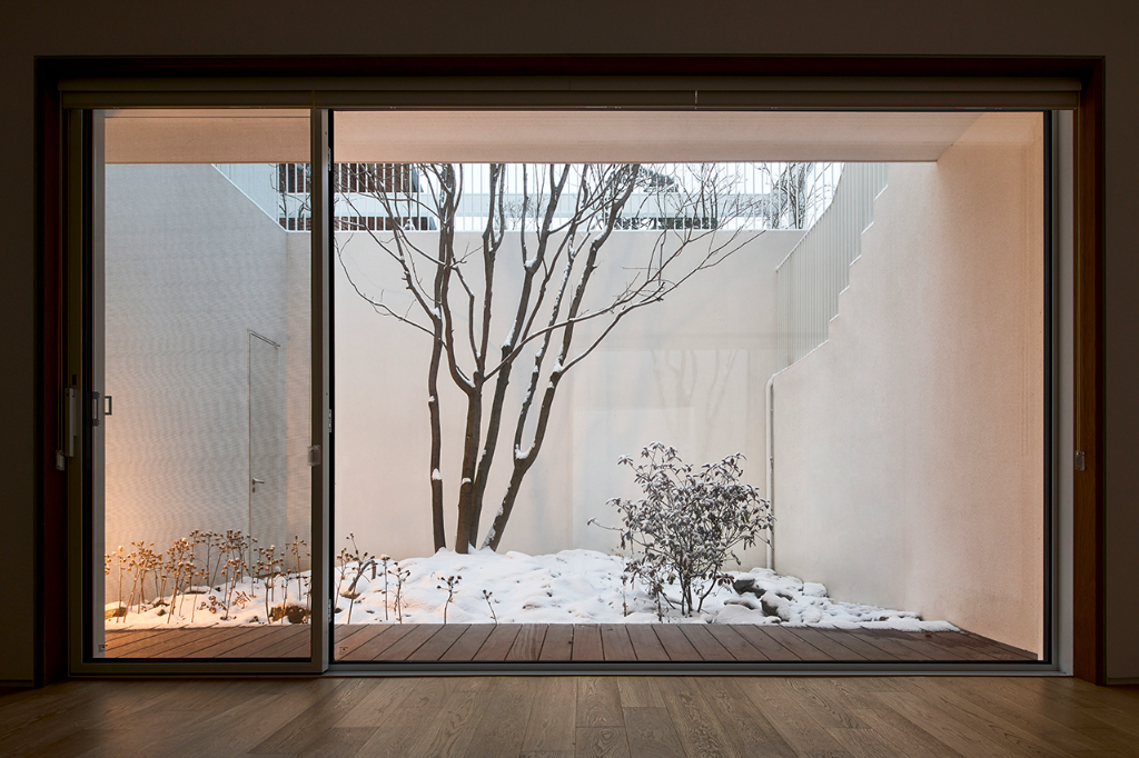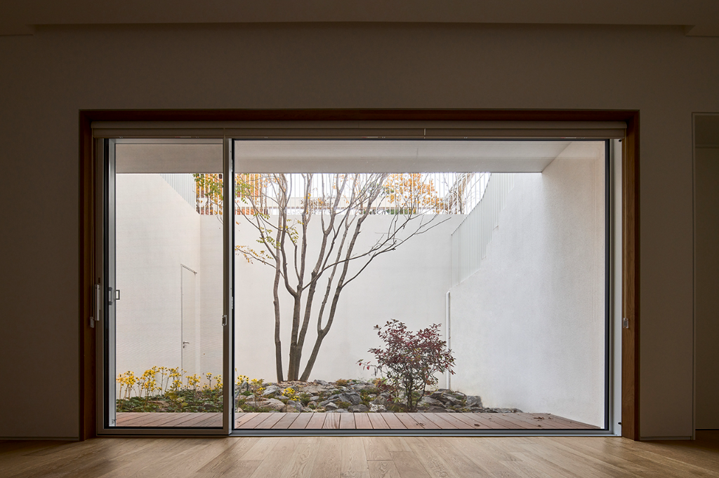 設計師了解屋主對於公寓生活的不滿以及對戶外環境的嚮往,所以將這片土地的中心規劃成一個大型庭院,庭院不僅連接著整座建物,也與建築本體相融合,借此讓整個戶外區域都被視為建築的一部分,透過這樣的設計令本案與一般制式化規格的大樓完全不同,極大化了有限的樓層空間,同時在別墅內的各個地方都能輕鬆欣賞到室外優美的景觀。