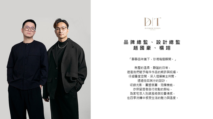 帝特設計的趙國豪、楊翊總監,攜手將公司從創建初期的青澀,短短四年便滋養為現今茁壯煥光、廣受好評的傑出設計品牌。兩人以沉穩的個性,加之跳脫傳統框架的嶄新思維,腳踏實地積累專業經驗及優良口碑,只為讓帝特獨有的溫暖設計,成為每位使用者改善生活的無形助力,創造融入業主美學及人文溫度的專屬空間,內容豐富的專訪受PChome上刊推薦!