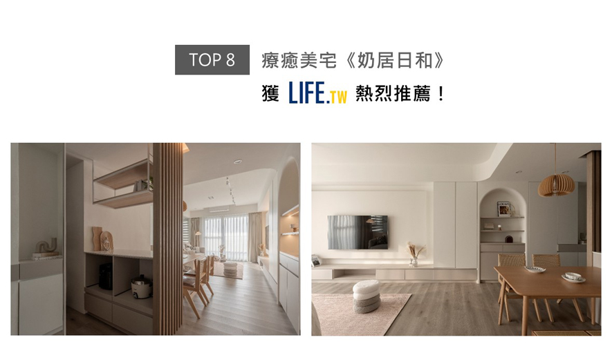 趙國豪、楊翊總監巧妙調配空間色彩比例,奠下大面積的奶茶色作為基底,搭配少量柔軟內斂的大地色系,以深淺各異的暖色均勻交織,描繪一派色調和諧的優美光景,其間點綴實木格柵屏風、木質家具與藤編椅的天然材質,豐富空間層次感之餘,也進一步彰顯質樸溫馨的質感,為家園注入獨一無二的和煦溫度,治癒溫柔家園《奶居日和》刊載於Life生活網版面!
