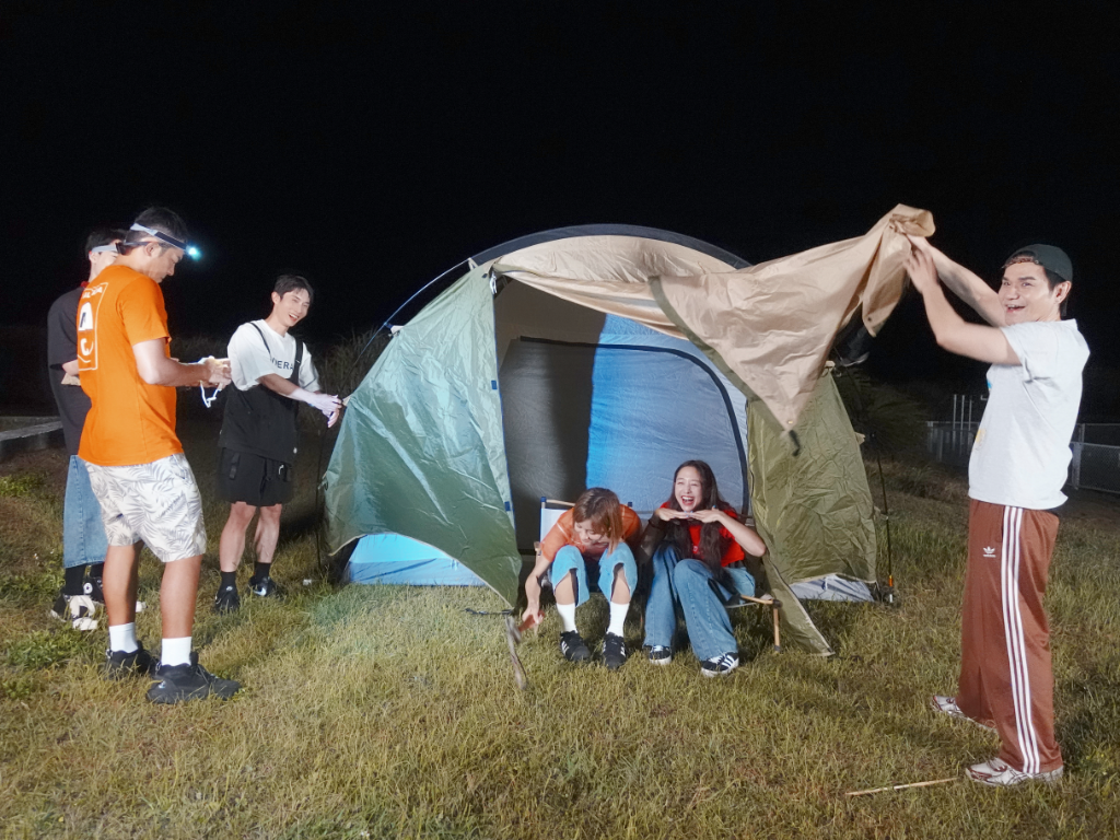 除了體力活的折磨,晚上的住宿分配更是一場「天堂與地獄」的對決。由於島上房源稀缺,合夥人宣布晚上必須「睡帳篷」,且必須透過命運的撲克牌來決定誰能享受「室內帳篷住宿」,誰得流落「睡荒野還需搭帳篷」。