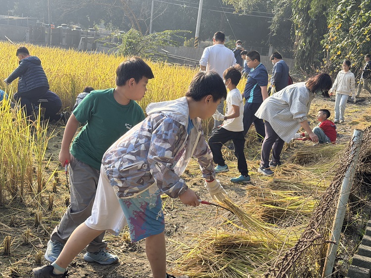 活動後續亦安排曬米、翻米、撿稻梗等體驗課程,引導學生體會「一粒米得來不易」,在汗水與歡笑中培養惜福感恩的態度,並深化永續環境與在地共好的教育理念。