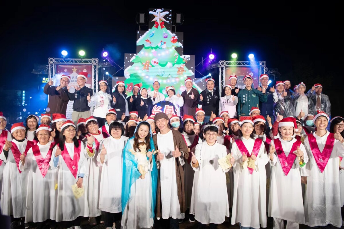 【記者 吳瑞興/嘉義市 報導】為傳遞聖誕節的平安與喜樂,嘉義市「希望禧年 光臨諸羅」平安夜踩街報佳音活動已邁入第23年,於今(19)日晚間中央廣場盛大登場。今年市府聯合基督教、天主教各大教會、各級學校、社團等共同舉辦,吸引24個優秀隊伍、超過2,000名熱情民眾盛裝參與;來自日本宮城縣加美町的貴賓團特地跨海參加,為這場嘉義限定的聖誕晚會增添了濃厚的國際友誼色彩。嘉義市長黃敏惠與天主教嘉義教區主教浦英雄、台灣基督長老教會嘉義中會議長戴乃宣牧師等宗教領袖共同點燈,現場充滿溫馨的聖誕氛圍。黃敏惠市長也與盛裝打扮的參與者,一同從中央廣場沿著文化路、中央噴水池到文化公園,分送甜糖給小朋友與長輩,一同與市民朋友分享平安與喜樂。