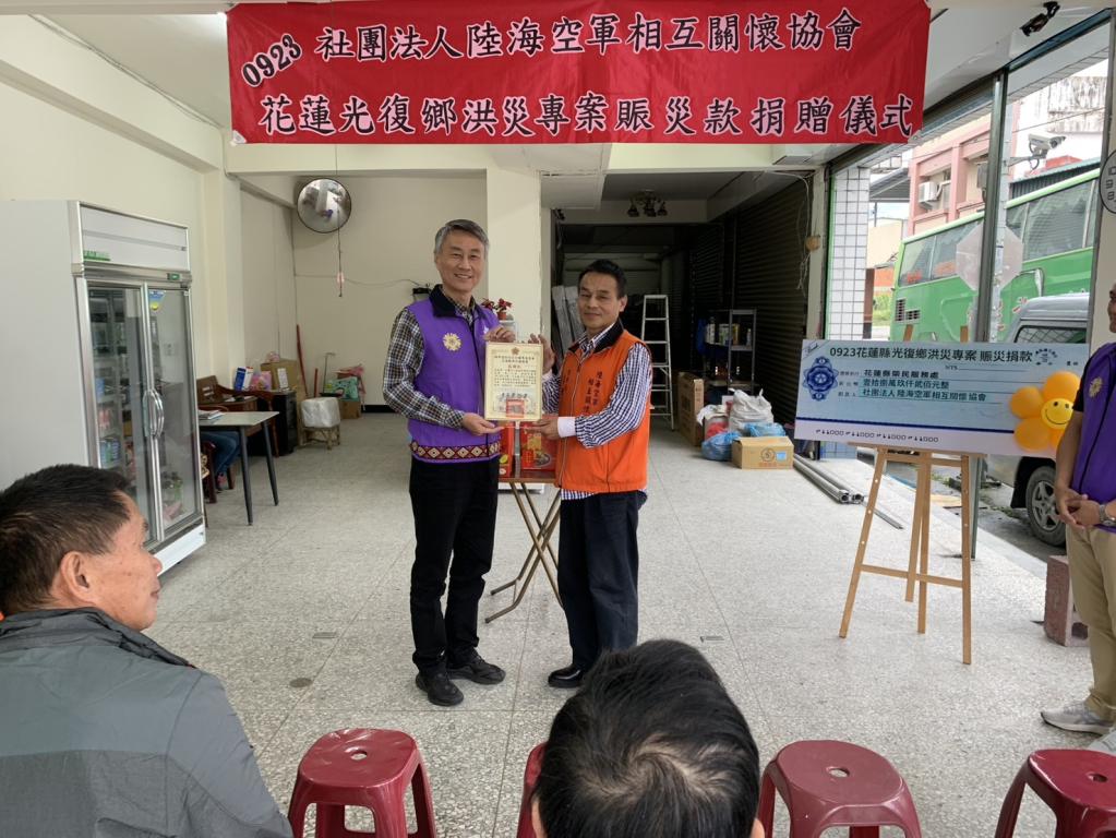 【勁報記者于郁金/花蓮報導】為關懷0923光復鄉洪災受災退除役官兵及其眷屬,社團法人陸海空軍相互關懷協會於19日捐款18萬9,200元予花蓮縣榮民服務處,協助受災榮民眷度過難關;花蓮縣榮服處特別於光復鄉舉辦捐贈儀式,簡單隆重溫馨感人,充分展現社會各界對退除役官兵及眷屬關懷與支持。